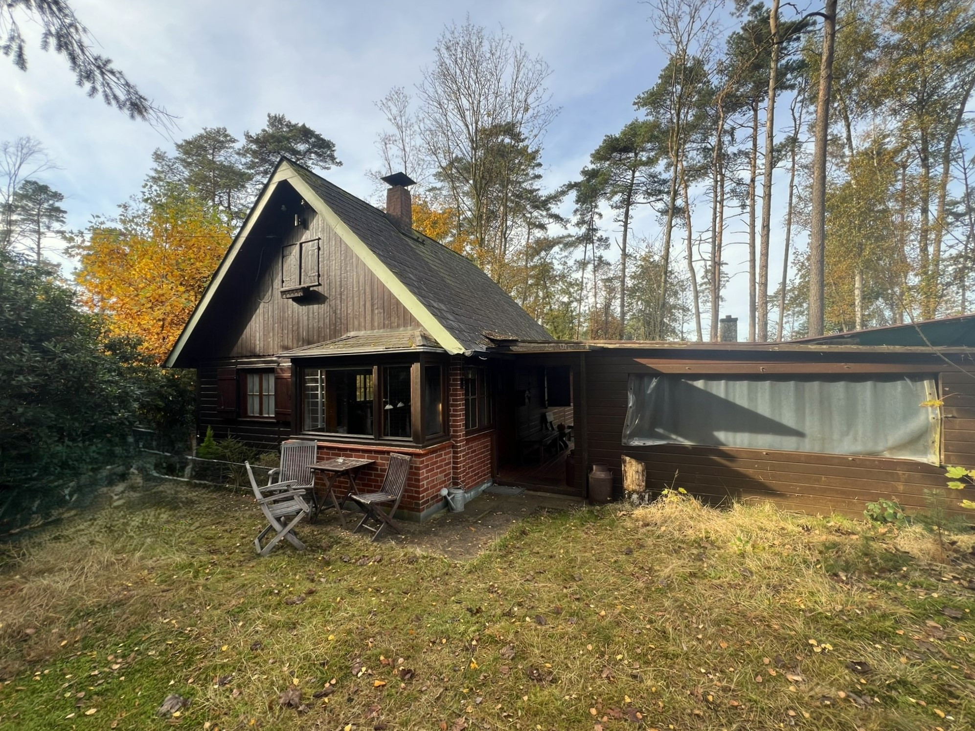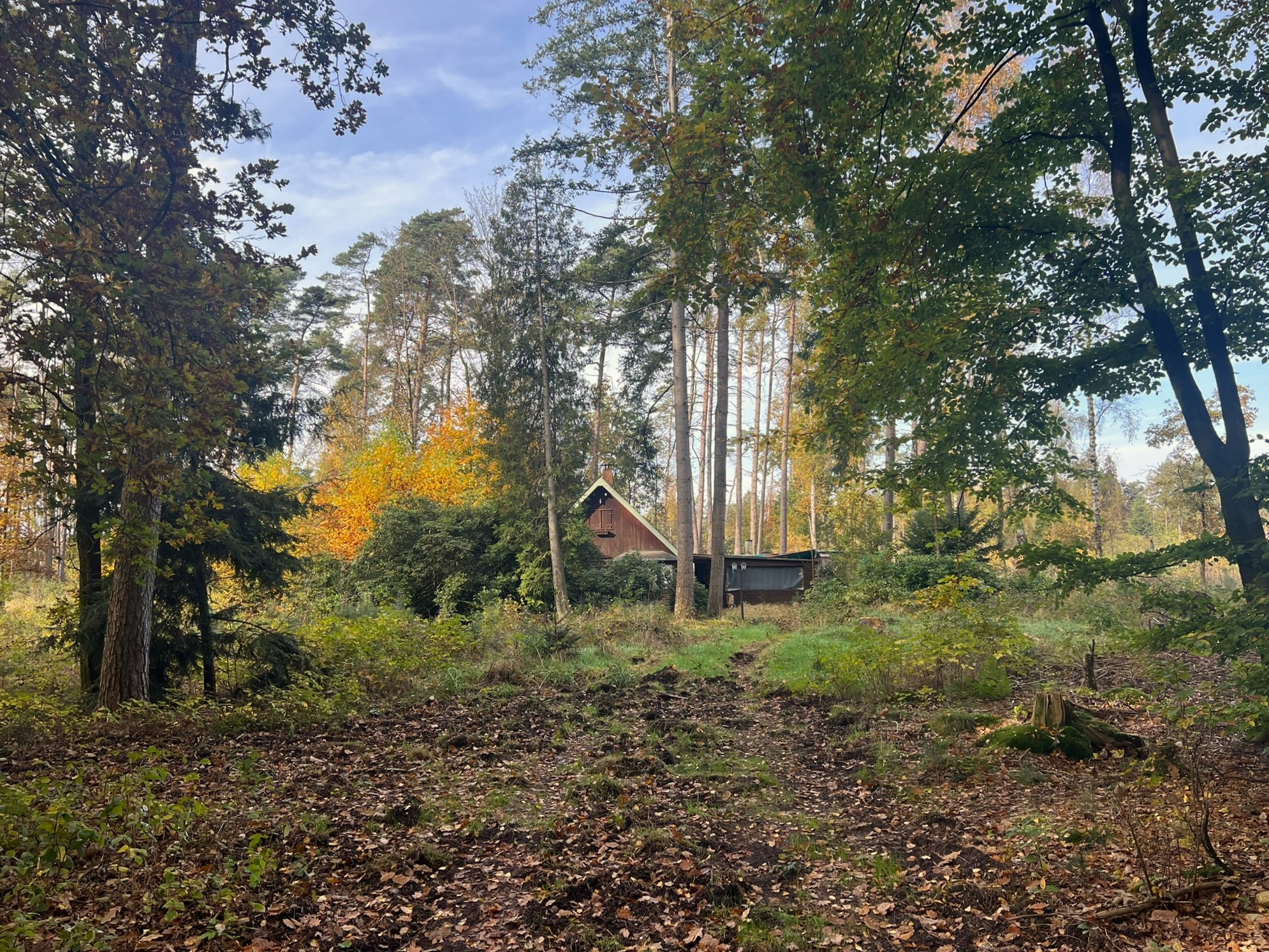 Die Immobilie liegt in einem lichten Waldgebiet mit mehreren Wochenendhäusern des Buchholzer Ortsteils Sprötze.