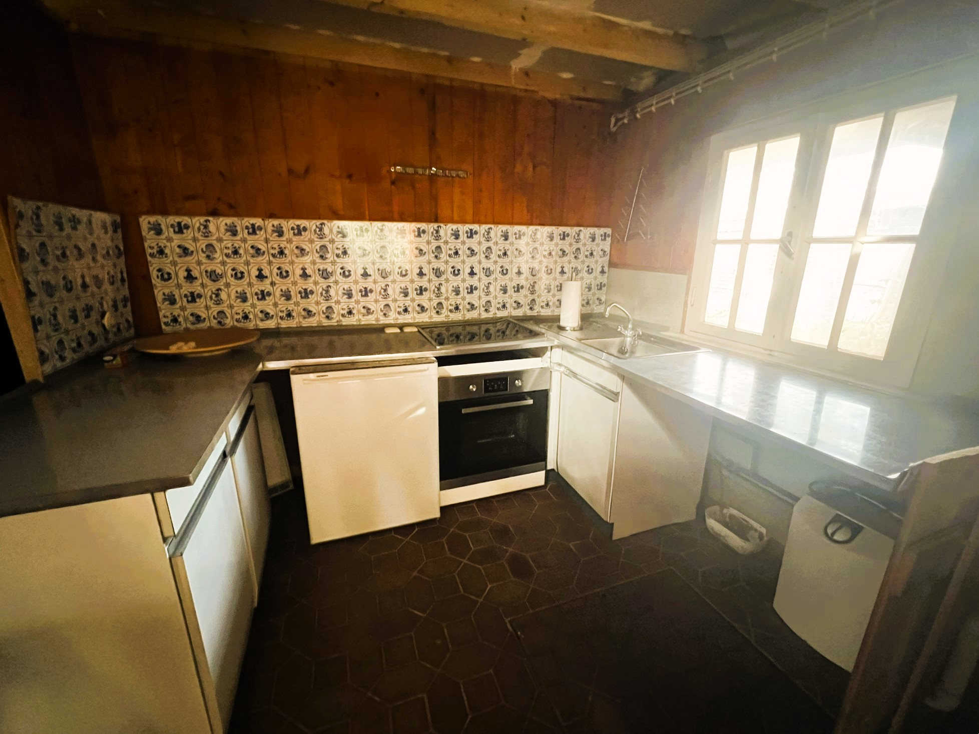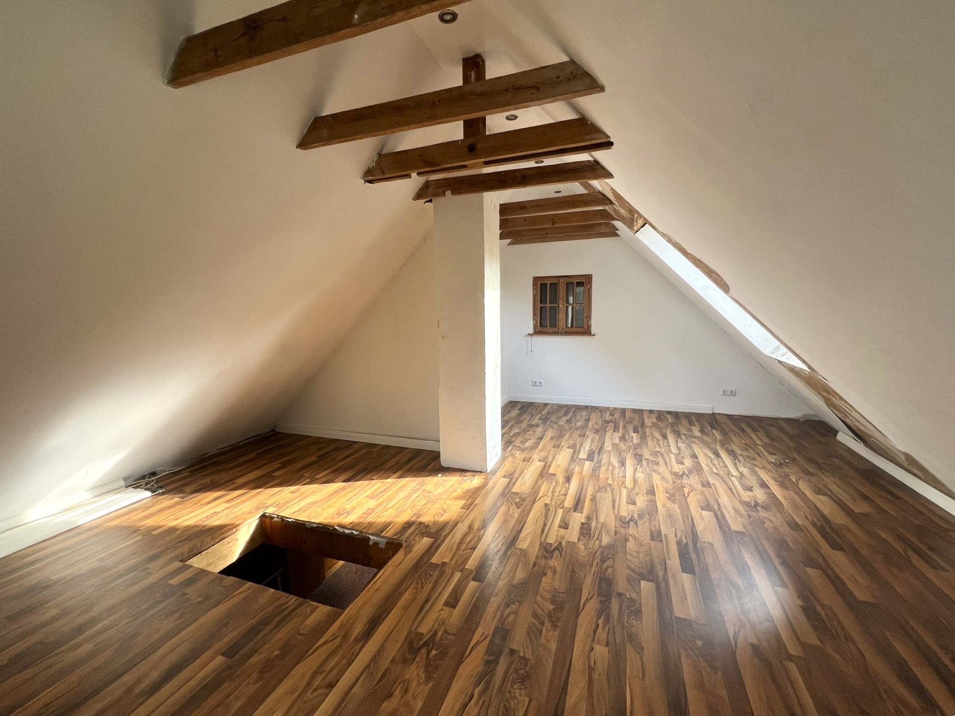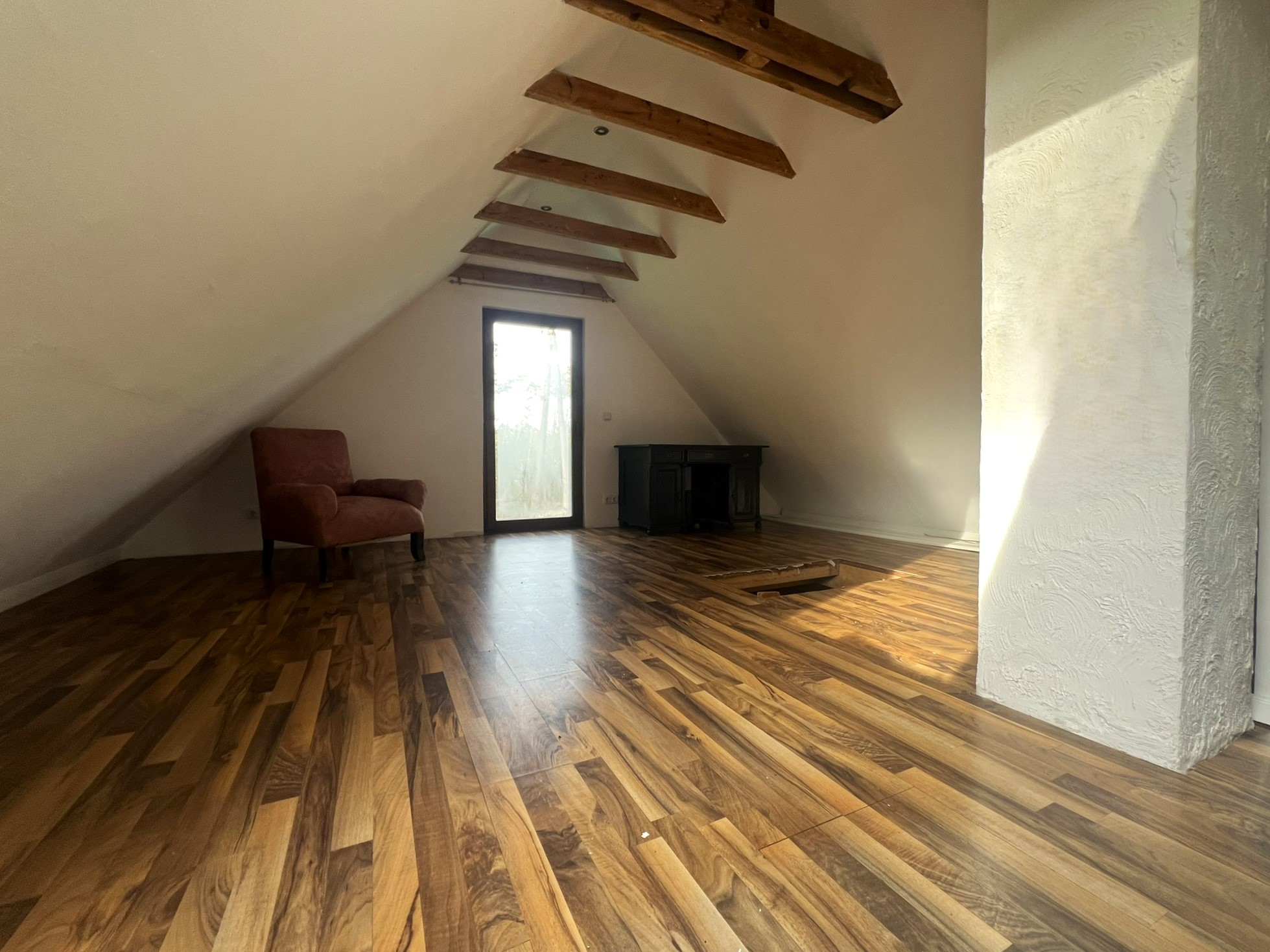 Weiterhin befinden sich auf dem Grundstück eine Remise sowie ein Schuppen, die jedoch durch Sturmschäden beide stark beschädigt sind. Auch das Haupthaus benötigt Arbeit, ist grundsätzlich jedoch in einem soliden Zustand. Die Sprossenfenster und die Fensterläden schaffen eine heimelige Atmosphäre. Der Ofen sorgt für wohlige Wärme.