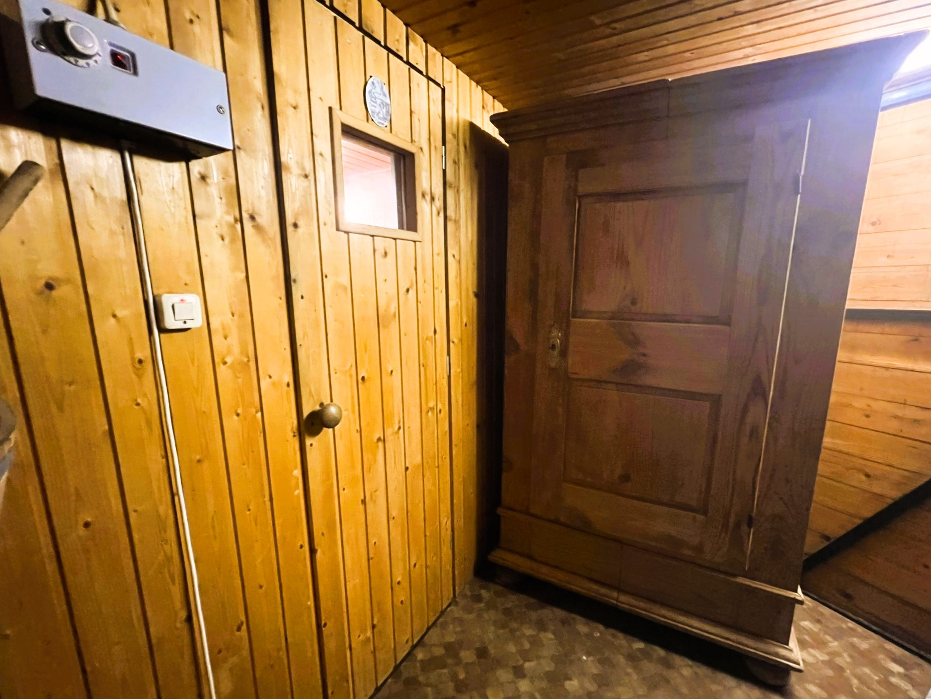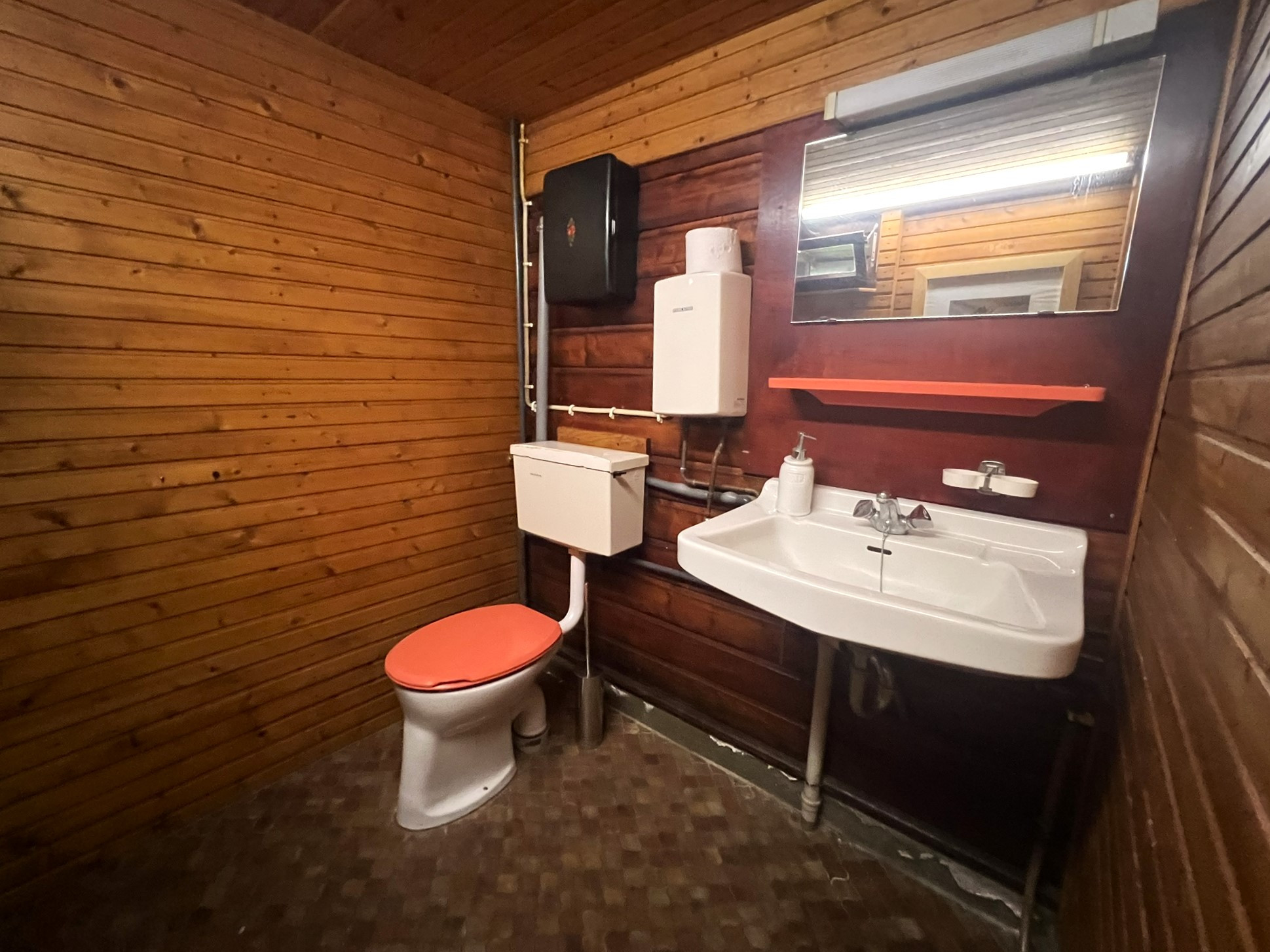 Es wurde teils massiv, teils in Holzbauweise erstellt und verfügt im Erdgeschoss über einen großen Wohnbereich mit offener Küche, ein WC, eine Dusche und eine Sauna. Über eine Leiter gelangen Sie in das ausgebaute Dachgeschoss, das bisher als Schlafzimmer genutzt wurde. Die Gesamtfläche des Hauses beträgt etwa 65 m². Eine Terrasse vor dem Haus sowie eine weitere hinter dem Gebäude bieten Ihnen zu jeder Tageszeit ein sonniges Plätzchen.