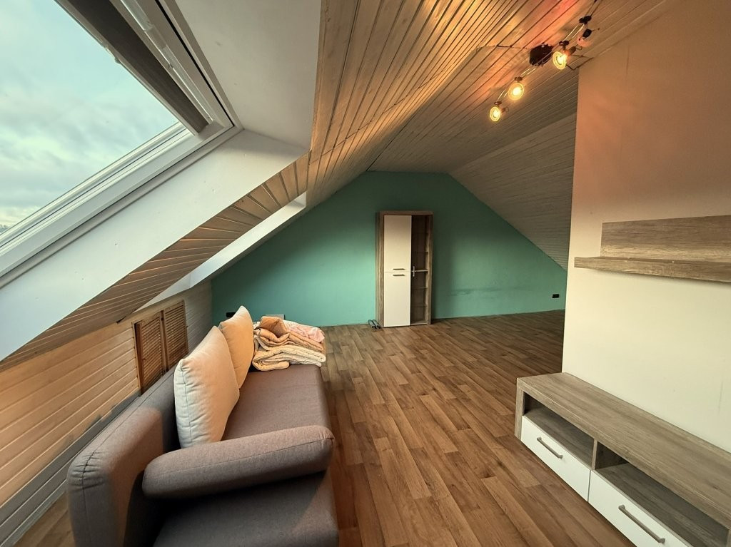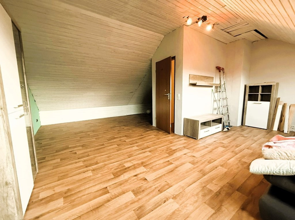 Das Dachgeschoss wurde zu einem großen Raum ausgebaut und offeriert die unterschiedlichsten Nutzungsmöglichkeiten. Zwei große Velux- Fenster sorgen für eine gute Belichtung. Als Bodenbelag fand hier ebenfalls Laminat Verwendung. Das Haus ist vollständig unterkellert. Über den Kellerflur erreichen Sie eine kleine Werkstatt, den Heizungskeller und einen ehemaligen Partykeller, der auch beheizt werden kann. Von diesem zweigt ein weiterer Raum ab, der über einen Waschmaschinenanschluss verfügt. Die Fenster des Hauses wurden im Jahr 2007 bereits erneuert und verfügen größtenteils über zum Teil elektrisch betriebene Rollläden. Beheizt wird das Gebäude über eine zentrale Ölheizung inklusive Warmwasseraufbereitung aus dem Jahr 1998. Ihr Fahrzeug findet in einer abschließbaren Einzelgarage Platz, deren Flachdach ebenfalls bereits erneuert wurde.