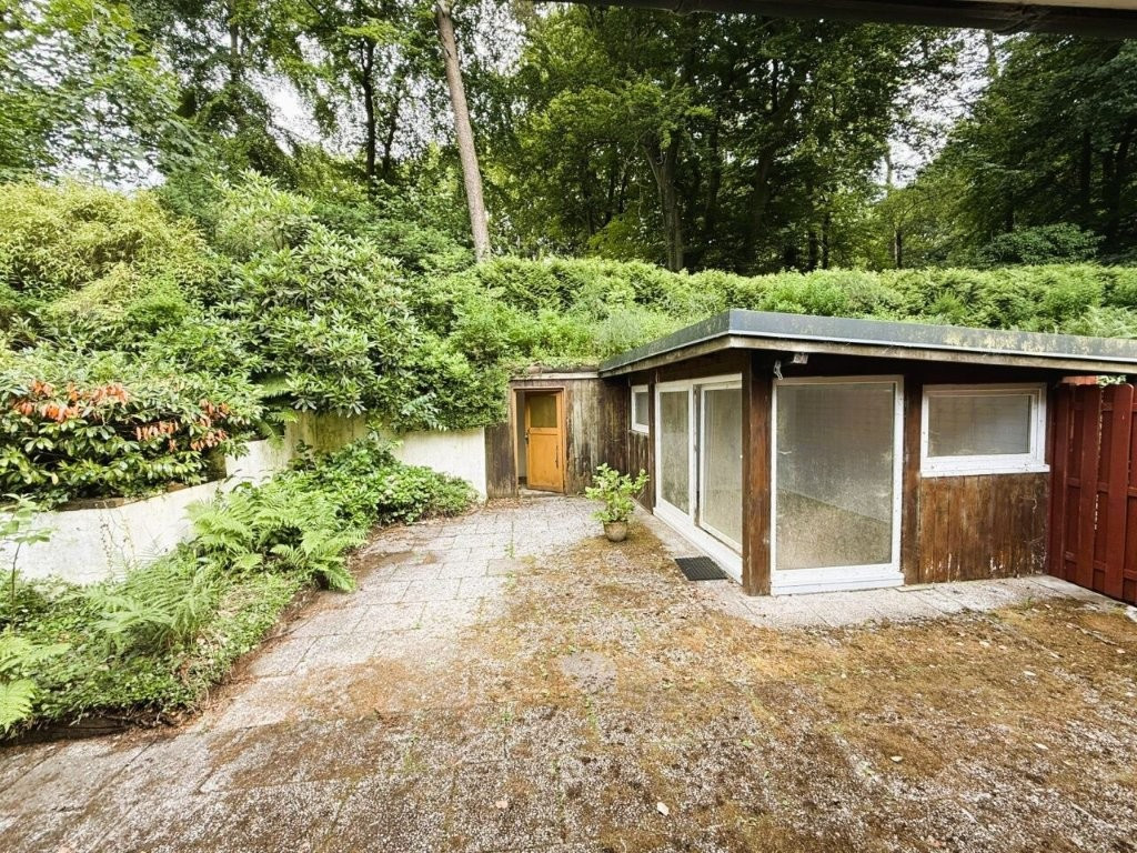 Die von uns angebotene Immobilie befindet sich kurz vor dem Ende einer Sackgasse in herausragend idyllischer und ruhiger Lage. Befahren Sie das von der Straße sichtgeschützte Grundstück, steht Ihnen ein Doppel-Carport mit angegliedertem Schuppen zur Verfügung. Ein gepflasterter Weg führt Sie durch den Garten entlang des alten Baumbestandes und der Rhododendren zu Ihrer Doppelhaushälfte. Vor dem Eingangsbereich befinden sich die uneinsehbare Südterrasse sowie ein helles Gartenhaus. Die Immobilie wurde im Jahr 1973 massiv erbaut und verfügt über drei Ebenen. Insgesamt ca. 156 m² Wohnfläche stehen Ihnen auf der mittleren sowie teilweise auf der unteren Ebene zur Verfügung, weitere ca. 71 m² Nutzfläche umfassen den Rest der unteren Ebene sowie das ausgebaute Dachgeschoss.