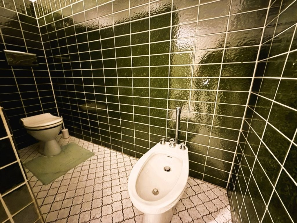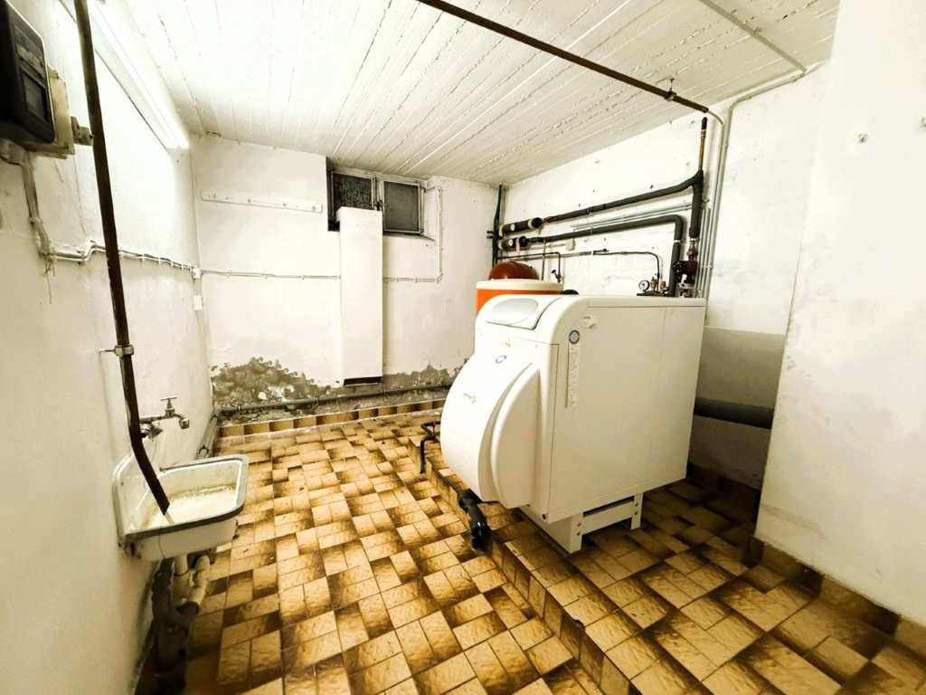 Eine offene Echtholztreppe führt Sie in die untere Ebene. Hier wurde größtenteils heller Laminatboden verlegt. Rechts von der dortigen Diele steht ein flexibel nutzbarer Raum zur Verfügung, geradezu ein großzügiges, helles Zimmer mit Zugang zu einer weiteren Terrasse. Sie ist ebenfalls von dem benachbarten dritten Zimmer dieser Etage erreichbar. Links von der Diele befindet sich ein in dunkelgrün gehaltenes Badezimmer. Dieses wurde mit einer Badewanne, zwei Waschtischen, einem WC und einem Bidet ausgestattet. In dem von dort begehbaren Heizungsraum, der auch als Waschküche dient, ist die Ölbrennwertheizung mit zentraler Warmwasseraufbereitung von Brötje aus dem Jahr 2008 untergebracht. Sie versorgt sowohl die hier zum Verkauf stehenden Doppelhaushälfte als auch die benachbarte. Die laufenden Kosten werden zwischen beiden Parteien aufgeteilt. Zurzeit sind weder hierfür noch für die Wasserversorgung getrennte Zähler vorhanden. Inwieweit dies zukünftig bestehen bleibt, ist mit dem Nachbarn zu klären.