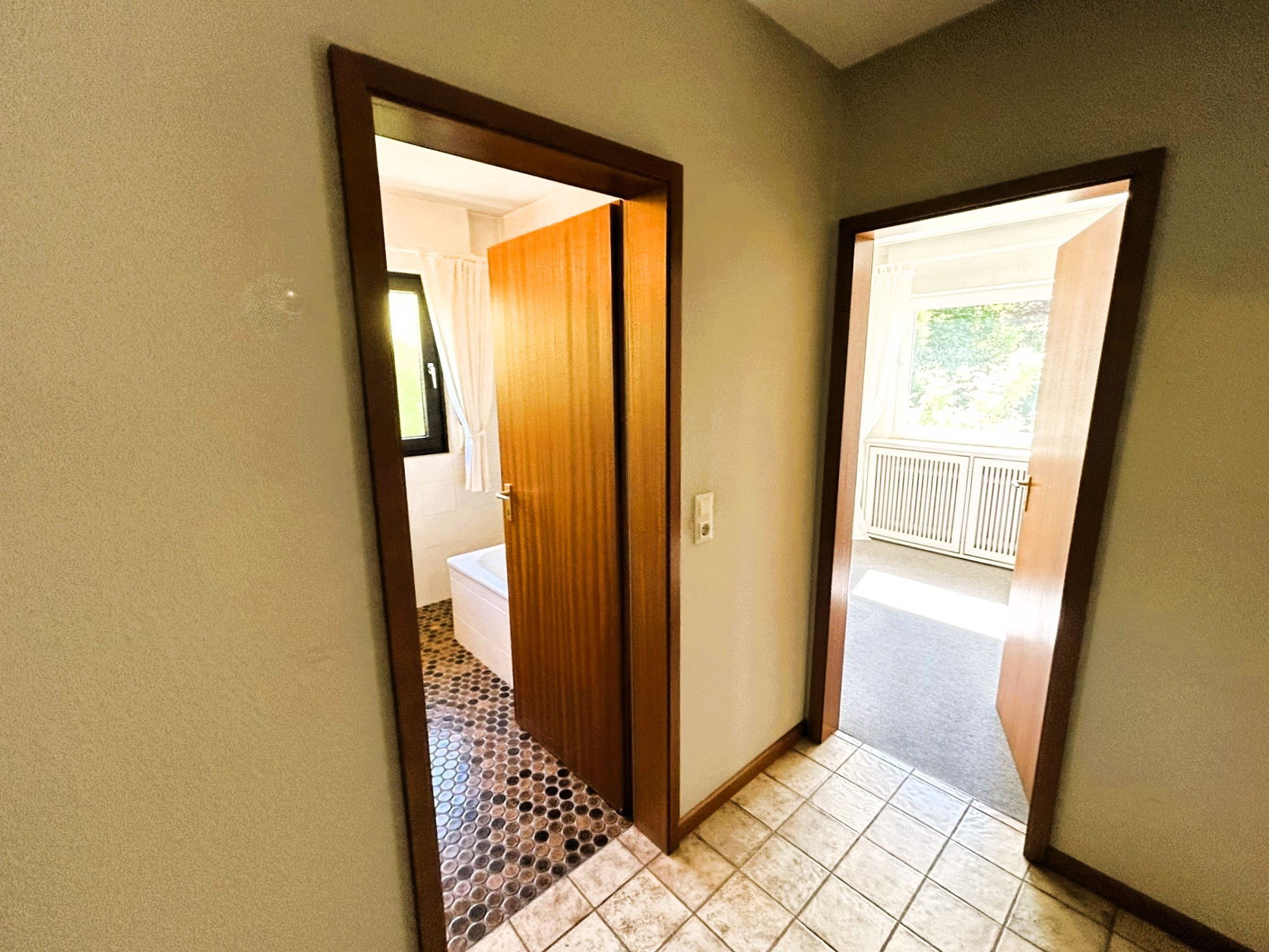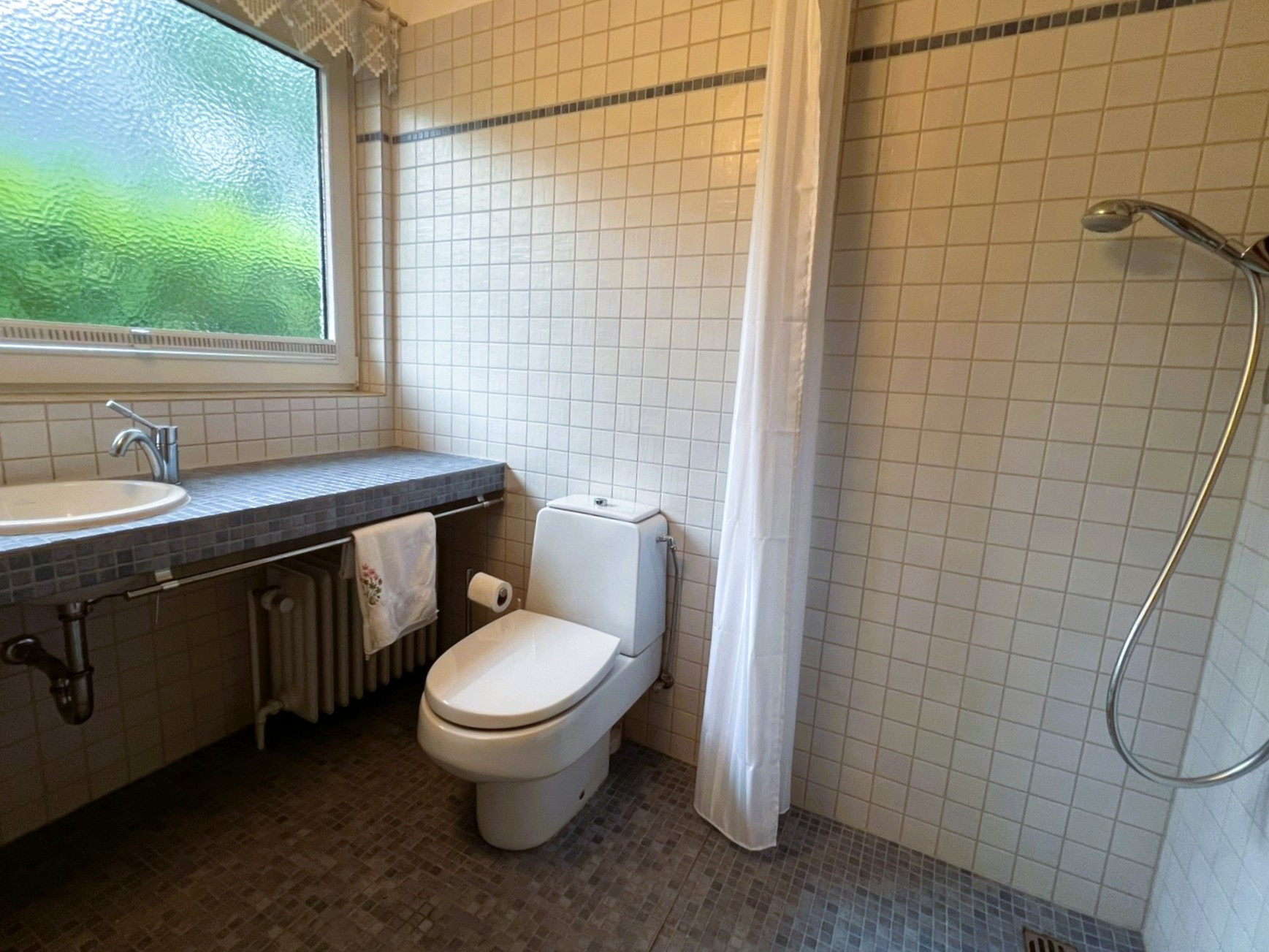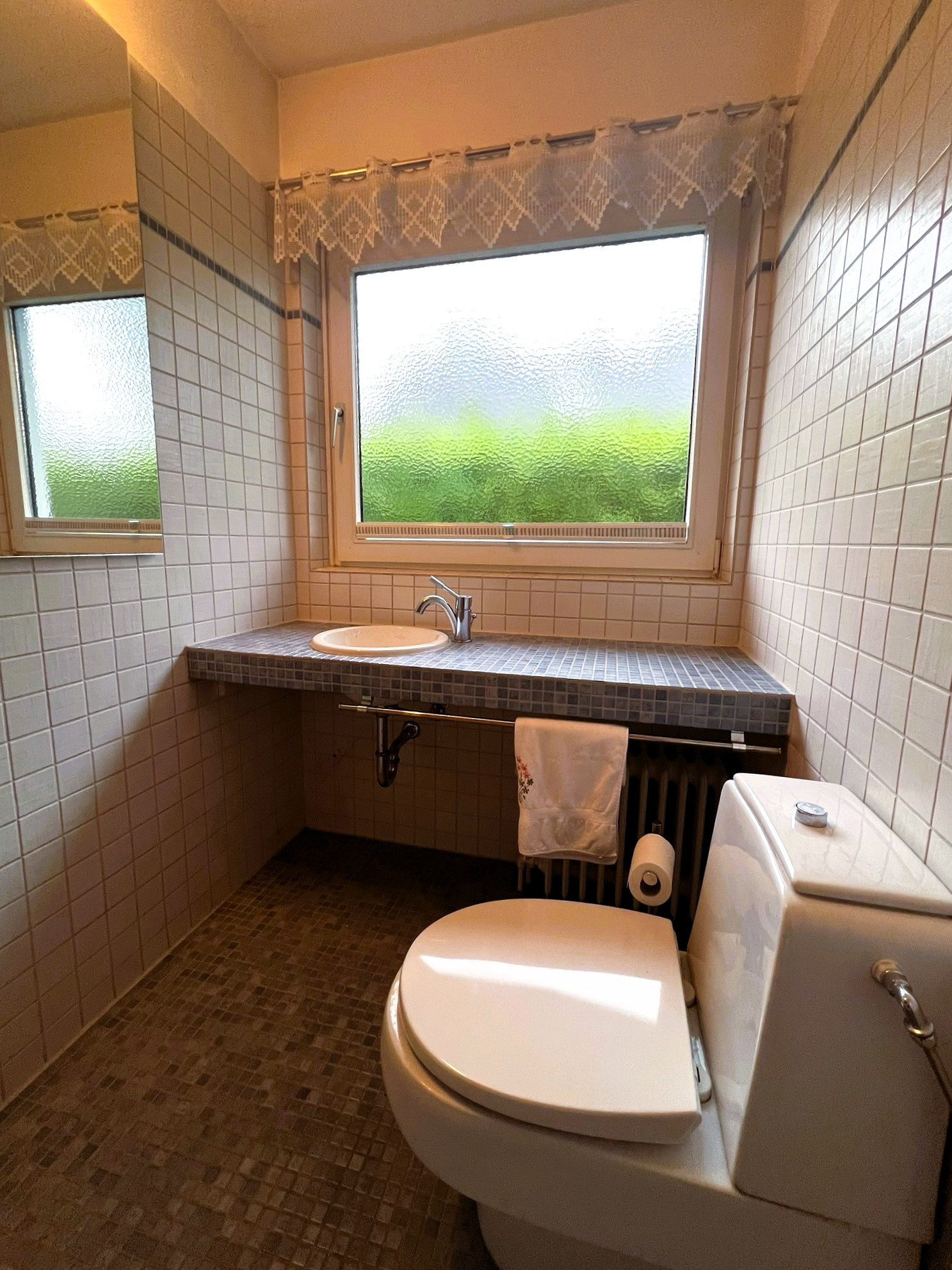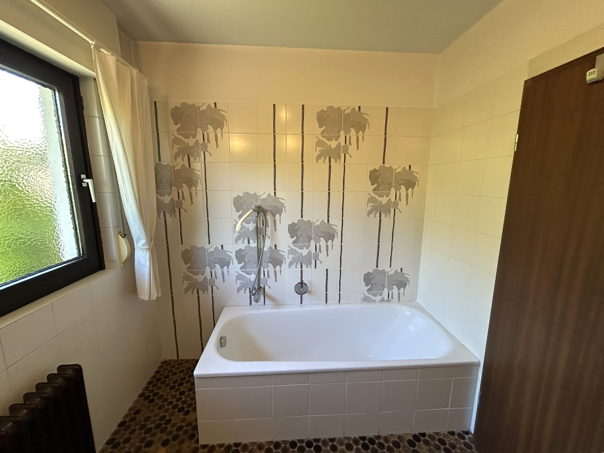 Über die mit Granitpflaster versehene Zuwegung erreichen Sie die Haustür, hinter der Sie die großzügige, helle Diele erwartet. Von ihr sind alle Räume des ca. 109,32 m² großen Erdgeschosses erreichbar. Linker Hand befindet sich ein freundliches, in weiß und blau gehaltenes, barrierefreies Duschbad neueren Datums. Das benachbarte Hauptbadezimmer mit Badewanne hat ebenfalls bereits einzelne Modernisierungsmaßnahmen erfahren und ist weiß-braun gestaltet. Drei helle Zimmer, allesamt zum Garten orientiert, warten auf ihre individuelle Nutzung.