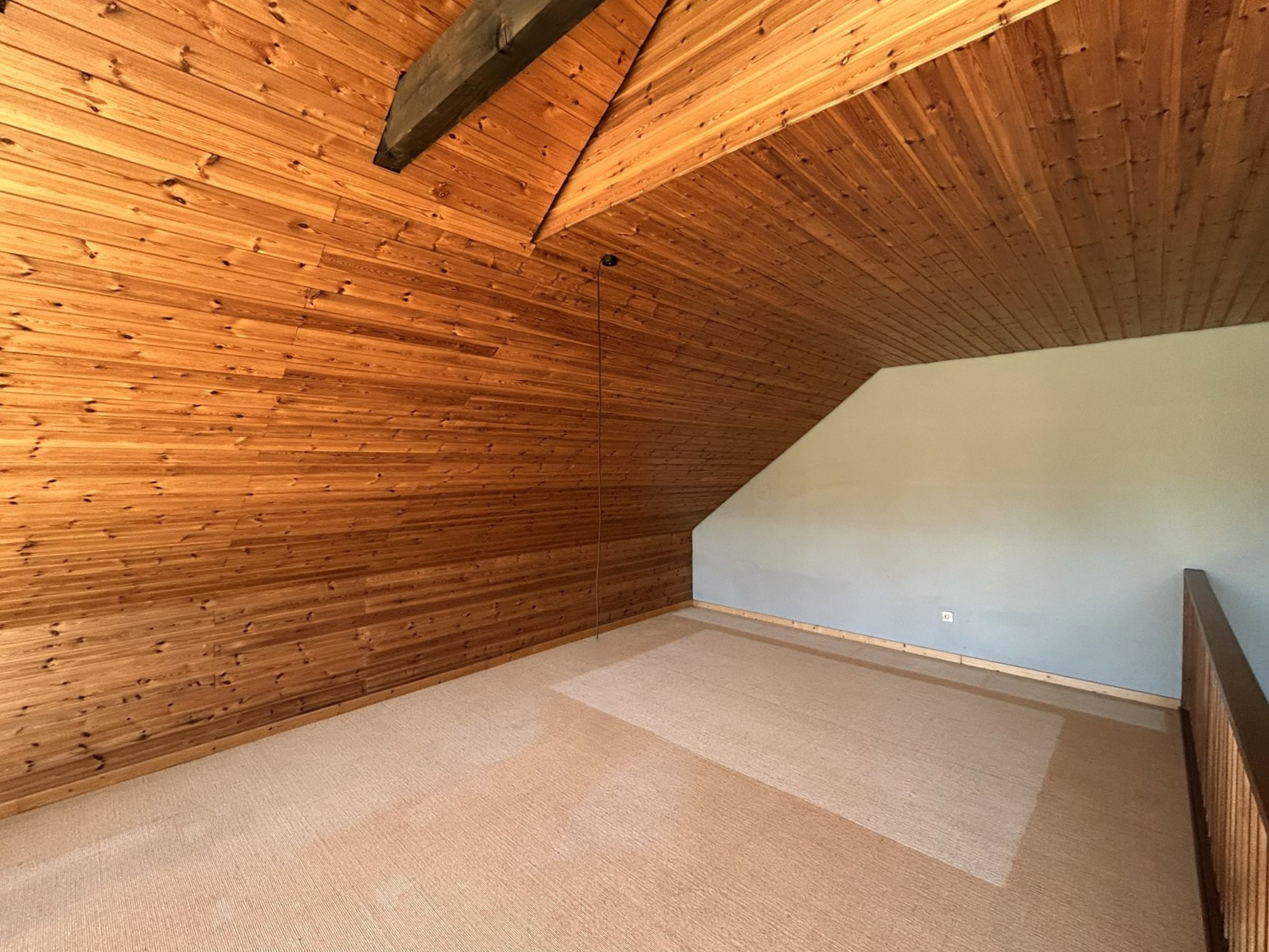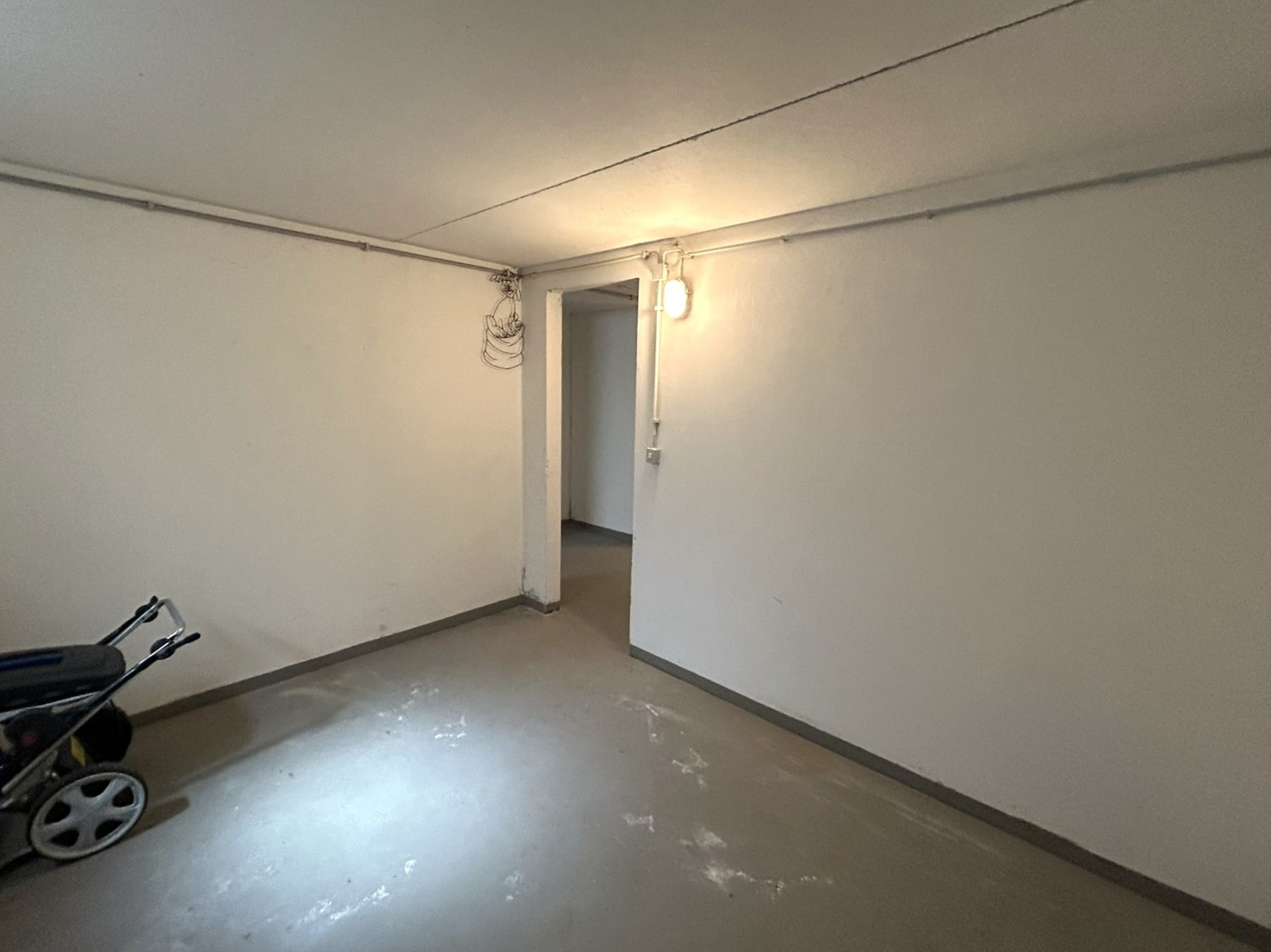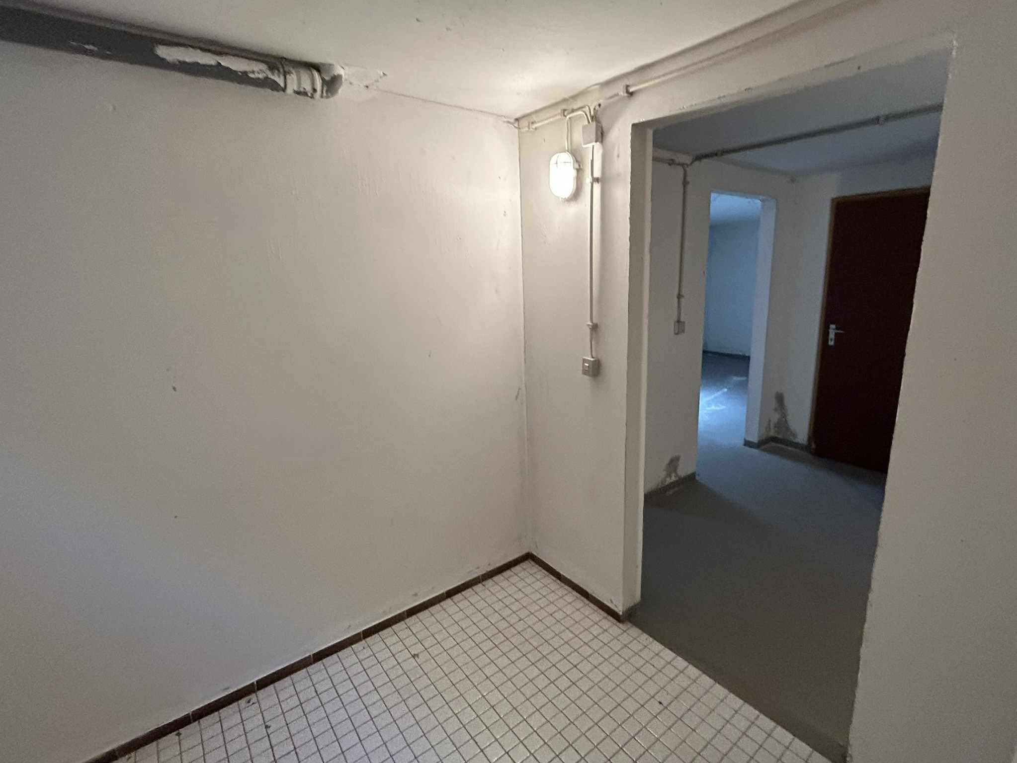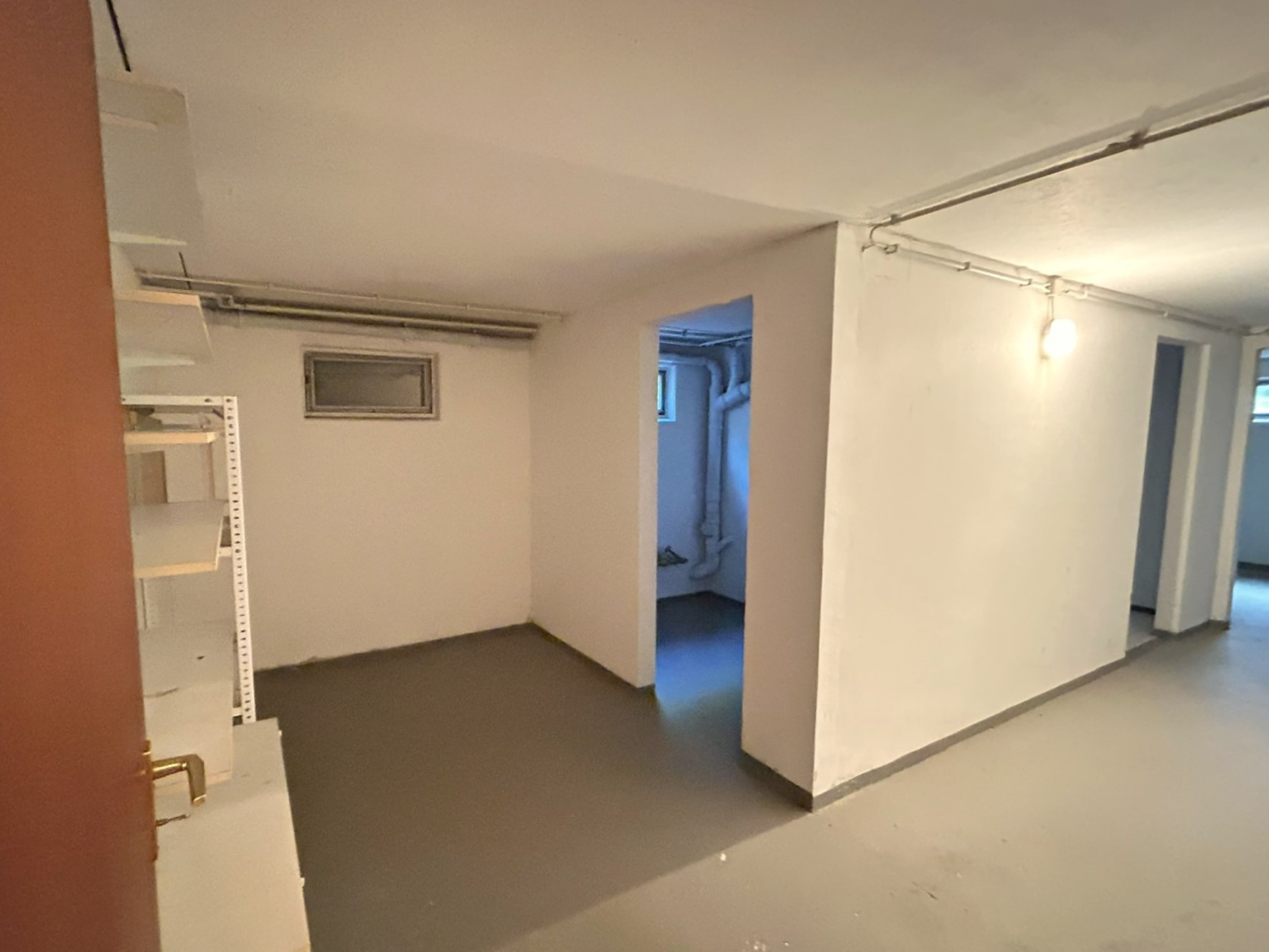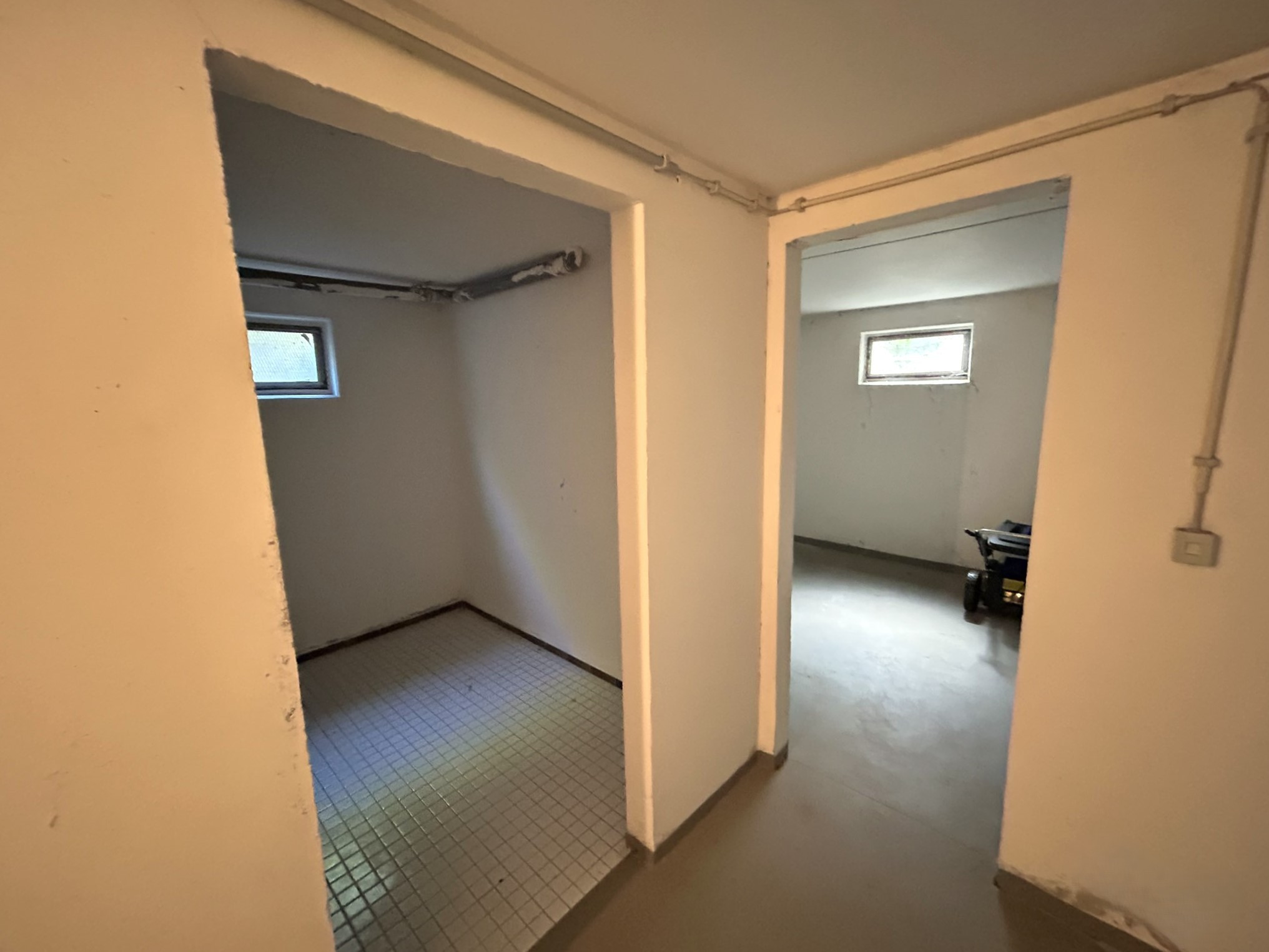 Eine offene Massivholztreppe führt Sie in das zum Teil ausgebaute Obergeschoss. Der weitläufige, studioartige Raum beeindruckt durch seine übergroße Fensterfront sowie die zum Teil freiliegenden Deckenbalken. Hier stehen Ihnen derzeit ca. 38,53 m² Wohnfläche zur Verfügung. Der Rest des Obergeschosses wird aktuell als Dachboden genutzt und bietet Ihnen somit ggf. noch weitere Ausbaumöglichkeiten. Unter Berücksichtigung der Schrägen könnten weitere ca. 40,29 m² Wohnfläche entstehen. Da ein Bebauungsplan nicht besteht, richtet sich die Zulässigkeit nach der Nachbarbebauung. Das konkrete Vorhaben ist mit dem Bauamt abzuklären.Reichlich Abstellfläche und Raum für diverse anderen Nutzungen finden Sie im Vollkeller des Hauses. Er umfasst ca. 112,46 m² verteilt auf sieben Räume und verfügt über eine Deckenhöhe von ca. 2,20 m. Unter anderem befinden sich dort zur Zeit die Waschküche und die Ende des Jahres 2022 installierte Gasbrennwertheizung mit zentraler Warmwasseraufbereitung von Buderus.
