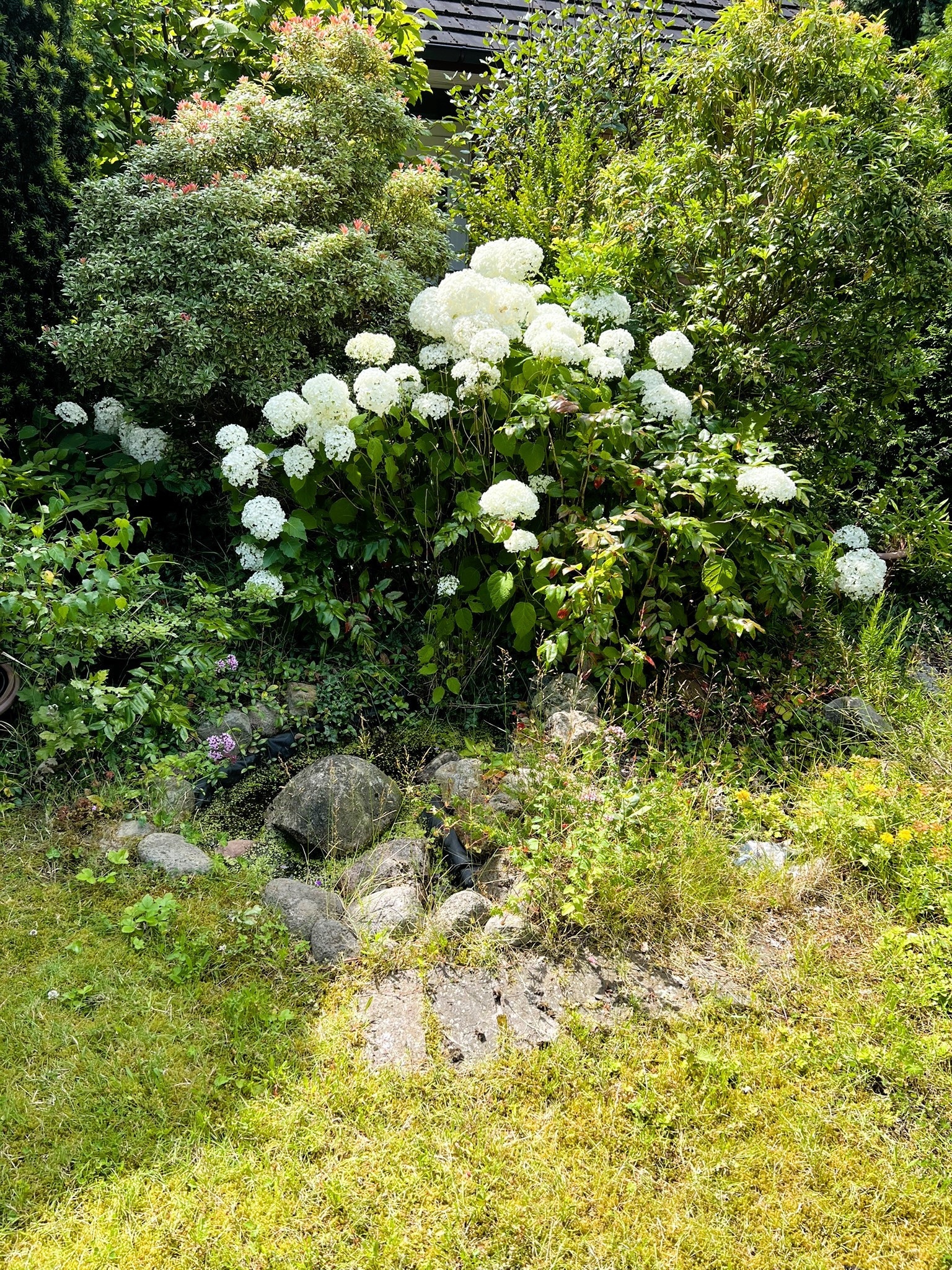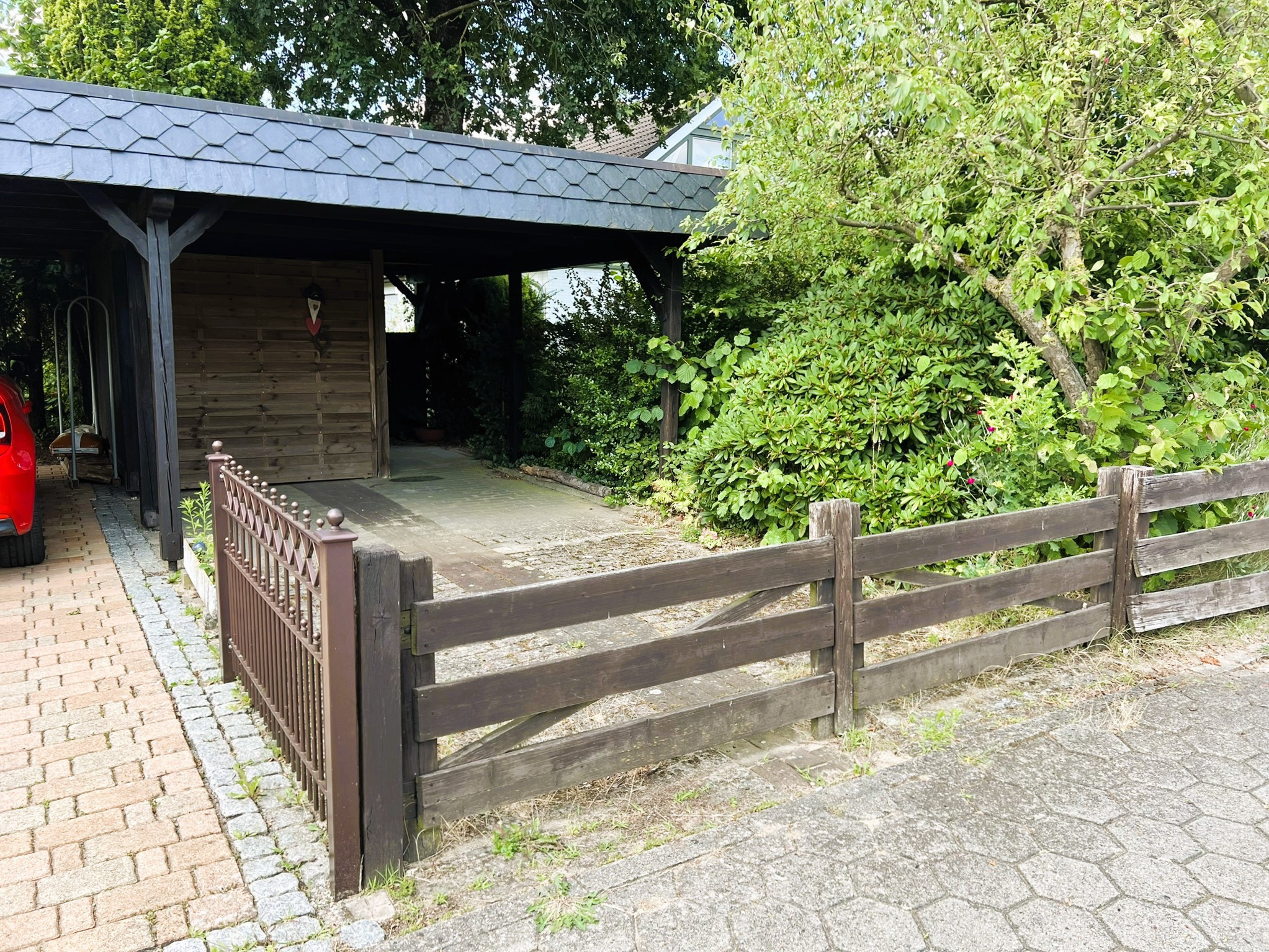 Der sonnige Garten ist abwechslungsreich und gleichzeitig pflegeleicht angelegt. Eiben, Koniferen, Buchsbäume und Rhododendren umsäumen die Grundstücksgrenzen und wahren Ihnen Ihre Privatsphäre. Eine große Eiche bietet bei Bedarf ein schattiges Plätzchen. Ihr Fahrzeug findet unter dem Carport seinen Platz. Möchten Sie das Auto stehen lassen, liegt die Bushaltestelle des Buchholzer Stadtbusses nur wenige Meter vom Grundstück entfernt.