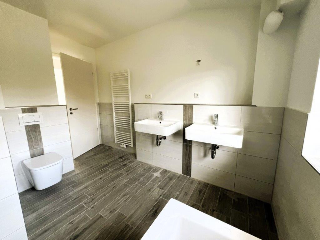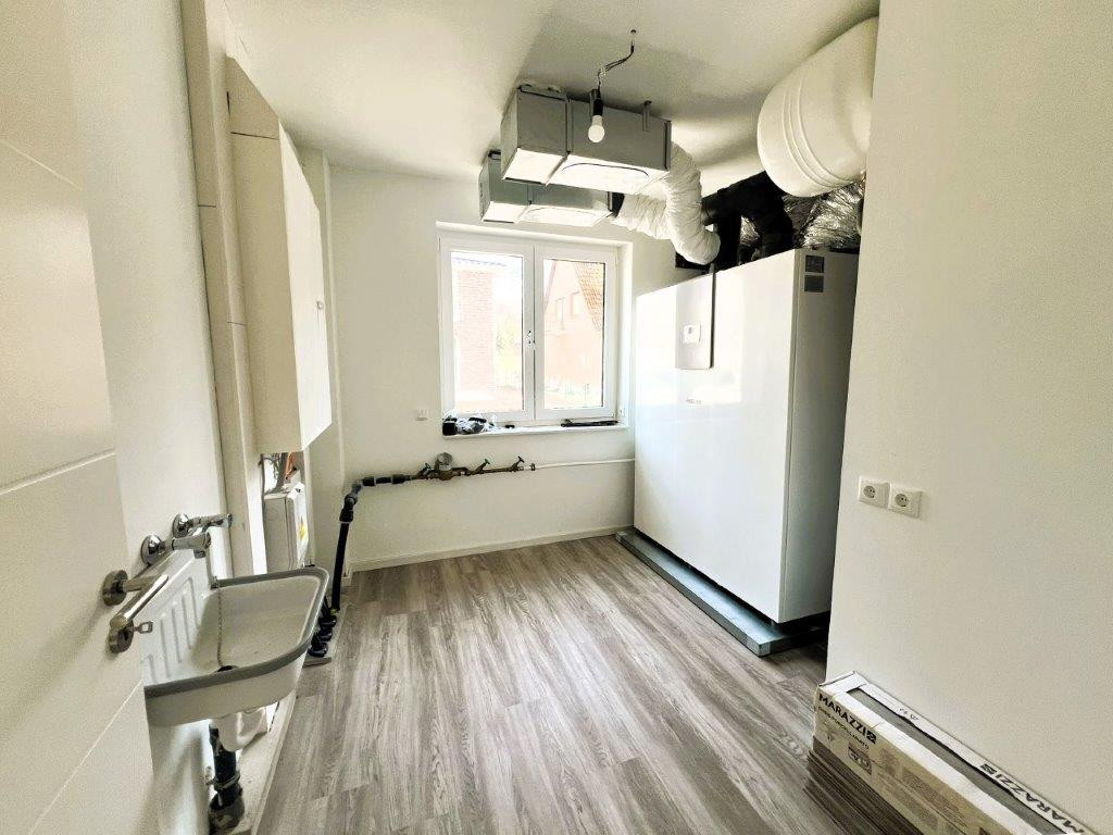 In ruhiger, grüner Lage entstanden im Jahr 2024 auf einem 1.029 m² großen Grundstück zwei großzügige Einfamilienhäuser in moderner und massiver Bauweise. Beide Häuser bieten eine Wohnfläche von jeweils 150 m². Über die geschmackvoll gepflasterte Auffahrt erreichen Sie das hier angebotene hintere Haus. Ihre Autos parken Sie bequem vor dem Gebäude. Wenn Sie Ihr neues Zuhause betreten, gelangen Sie zunächst in die helle Diele. Rechter Hand befindet sich ein flexibel nutzbares Zimmer, geradezu geht es durch die doppelflügelige Glastür in den rückwärtigen Wohn-Essbereich. Dieser ist ausgestattet mit einer Einbauküche, die keine Wünsche offen lässt. Der große Kühlschrank, der Backofen, das Induktionskochfeld, die Abzugshaube und der Geschirrspüler hochwertiger Markenhersteller bieten Ihnen alle Möglichkeiten zum Ausleben ihrer Kochkünste.