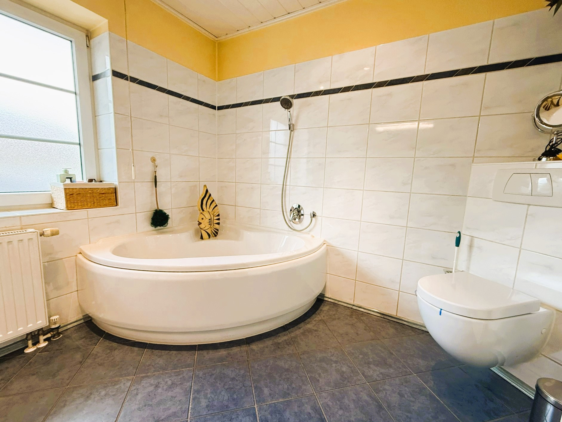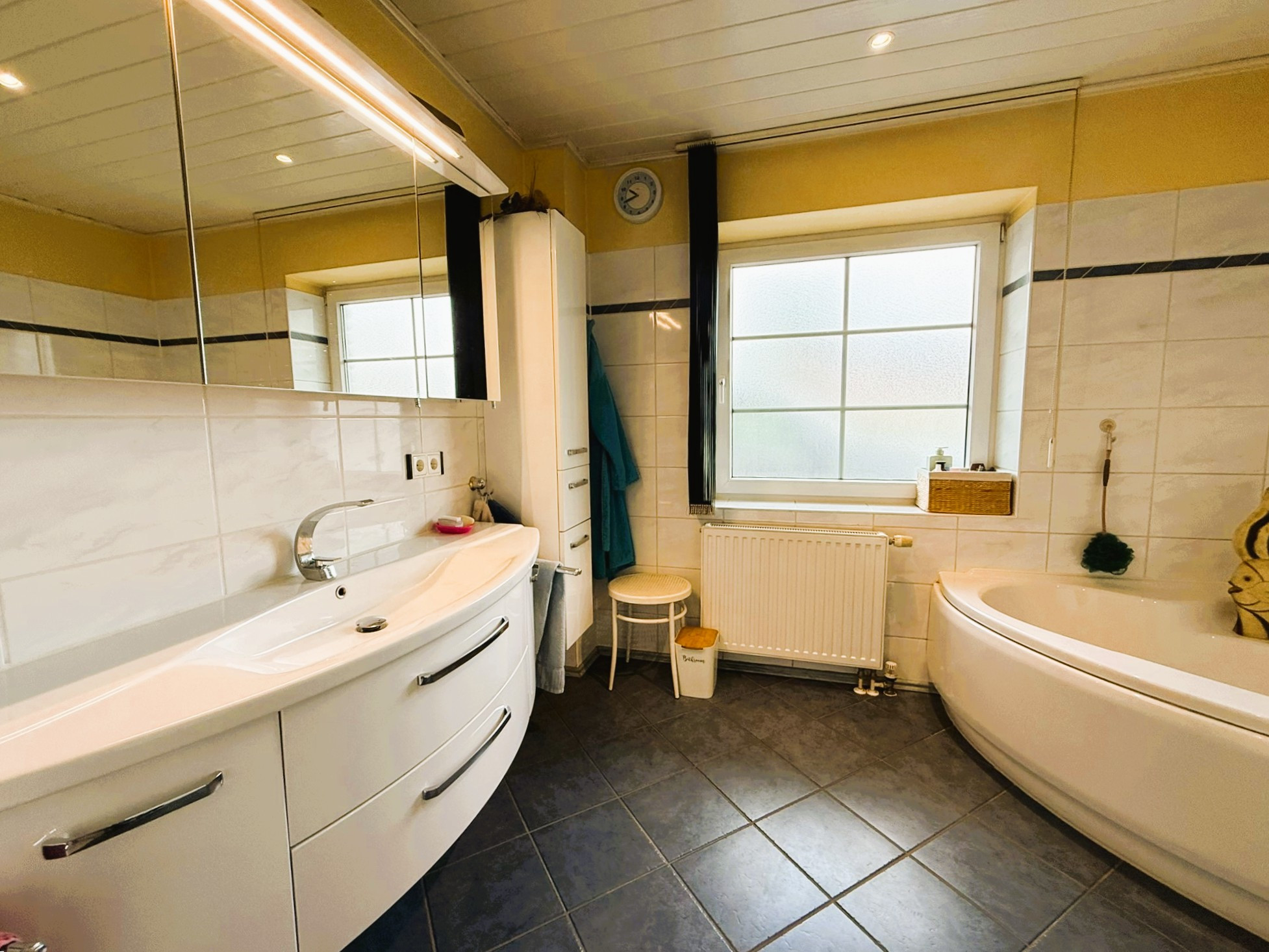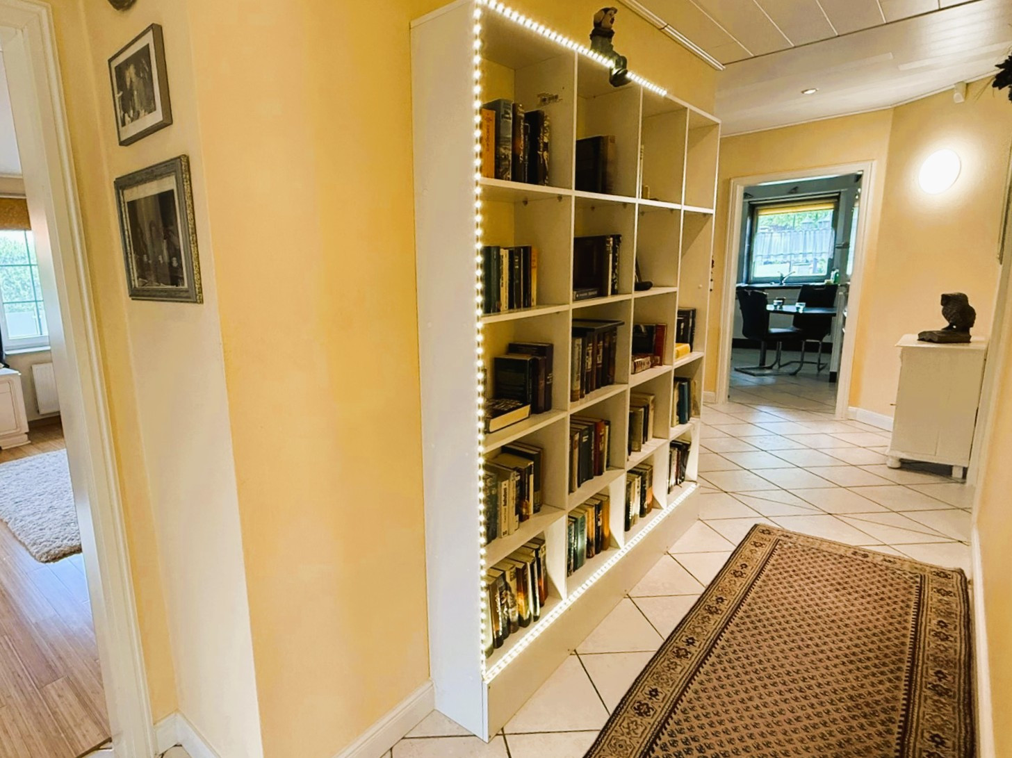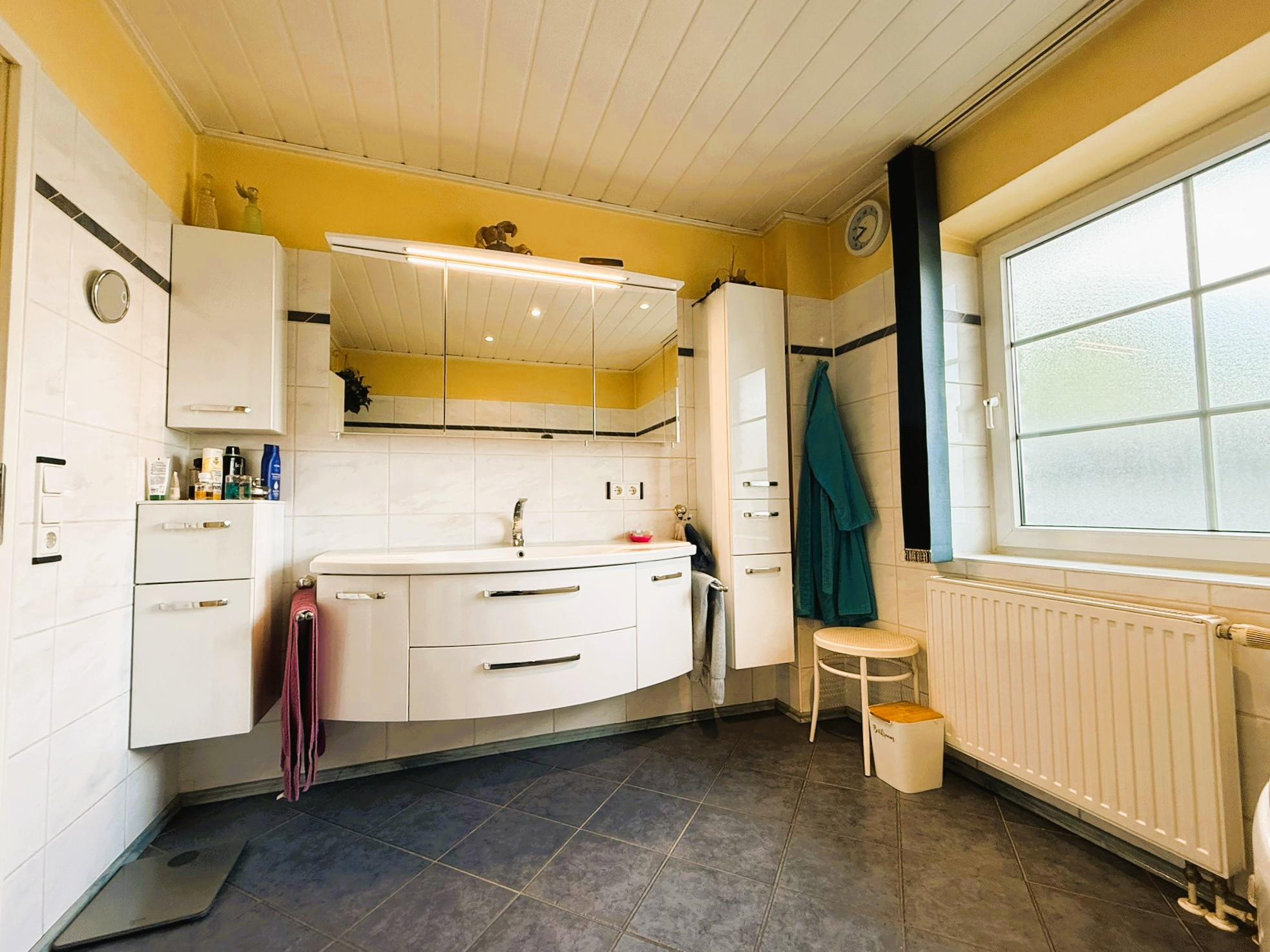 Dieser Bungalow wurde im Jahr 2000 auf einem 829 m² großem Eigenlandgrundstück individuell geplant und mit hochwertigen Materialien errichtet. Er verfügt derzeit über ca. 136 m² Wohnfläche. Der weiße Verblender und das anthrazitfarbene Walmdach verleihen ihm eine ansprechende, zeitlose Optik.Über ein geschmackvoll gestaltetes Eingangsportal erreichen Sie die etwas zurückversetzte, witterungsgeschützte Eingangstür und betreten den Windfang Ihres neuen Zuhauses. Linkerhand liegt das helle Gäste-Bad mit Waschtisch, WC, Dusche und Fenster. Durchschreiten Sie geradezu das Glaselement, befinden Sie sich im Flur, von dem alle weiteren Räume zu erreichen sind.