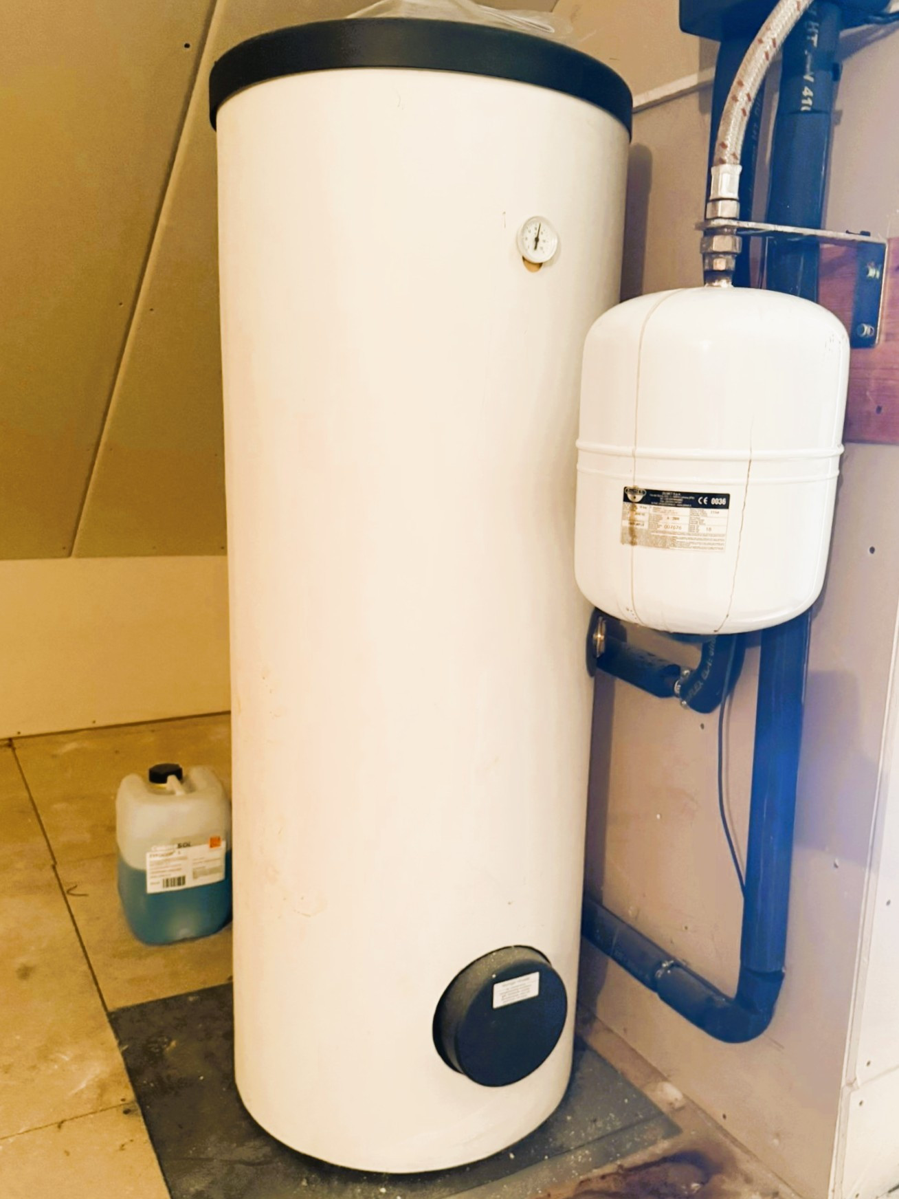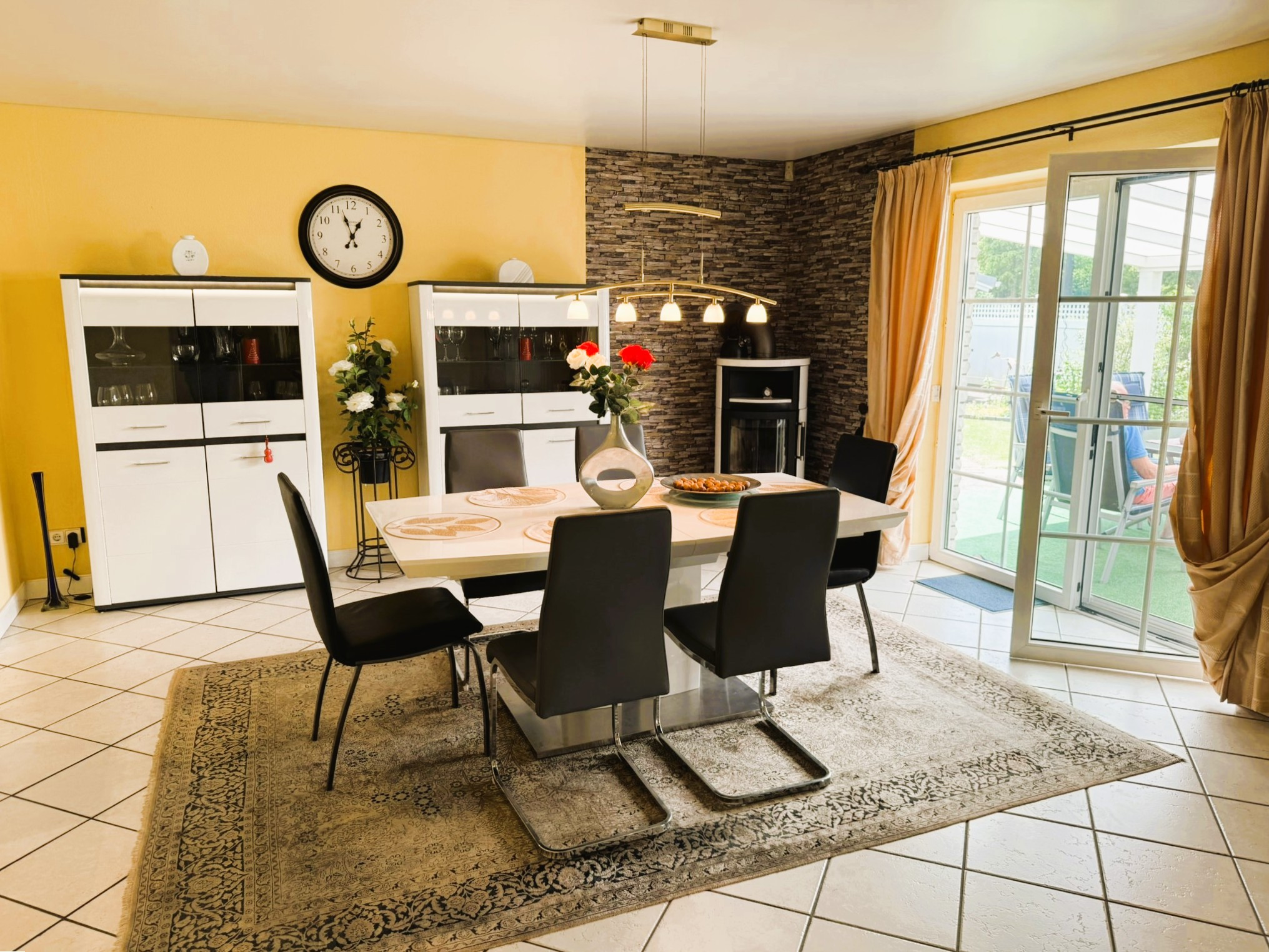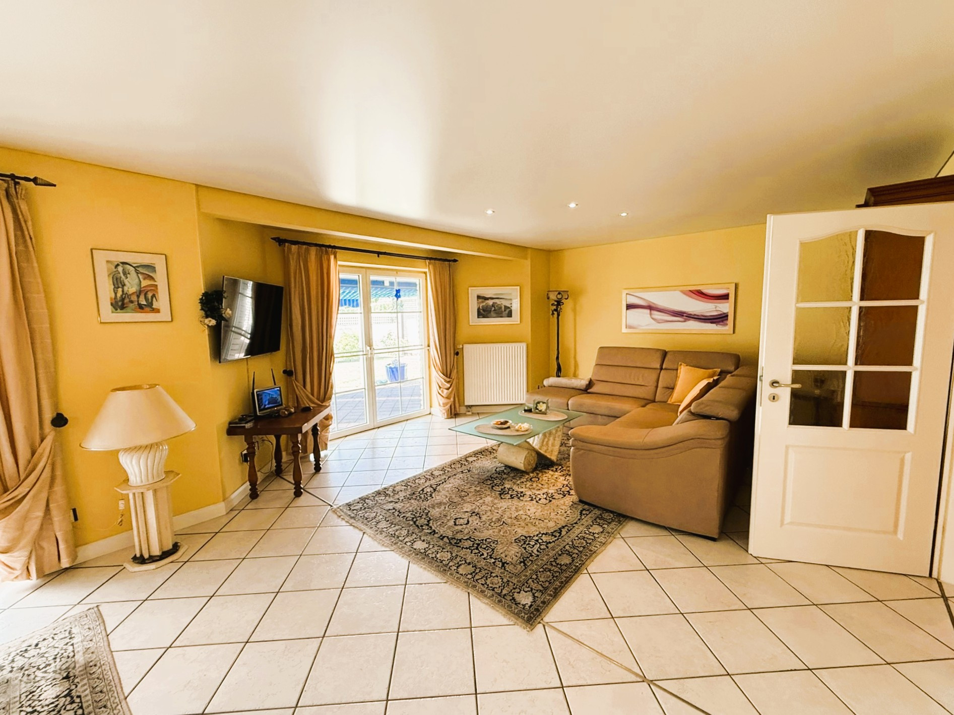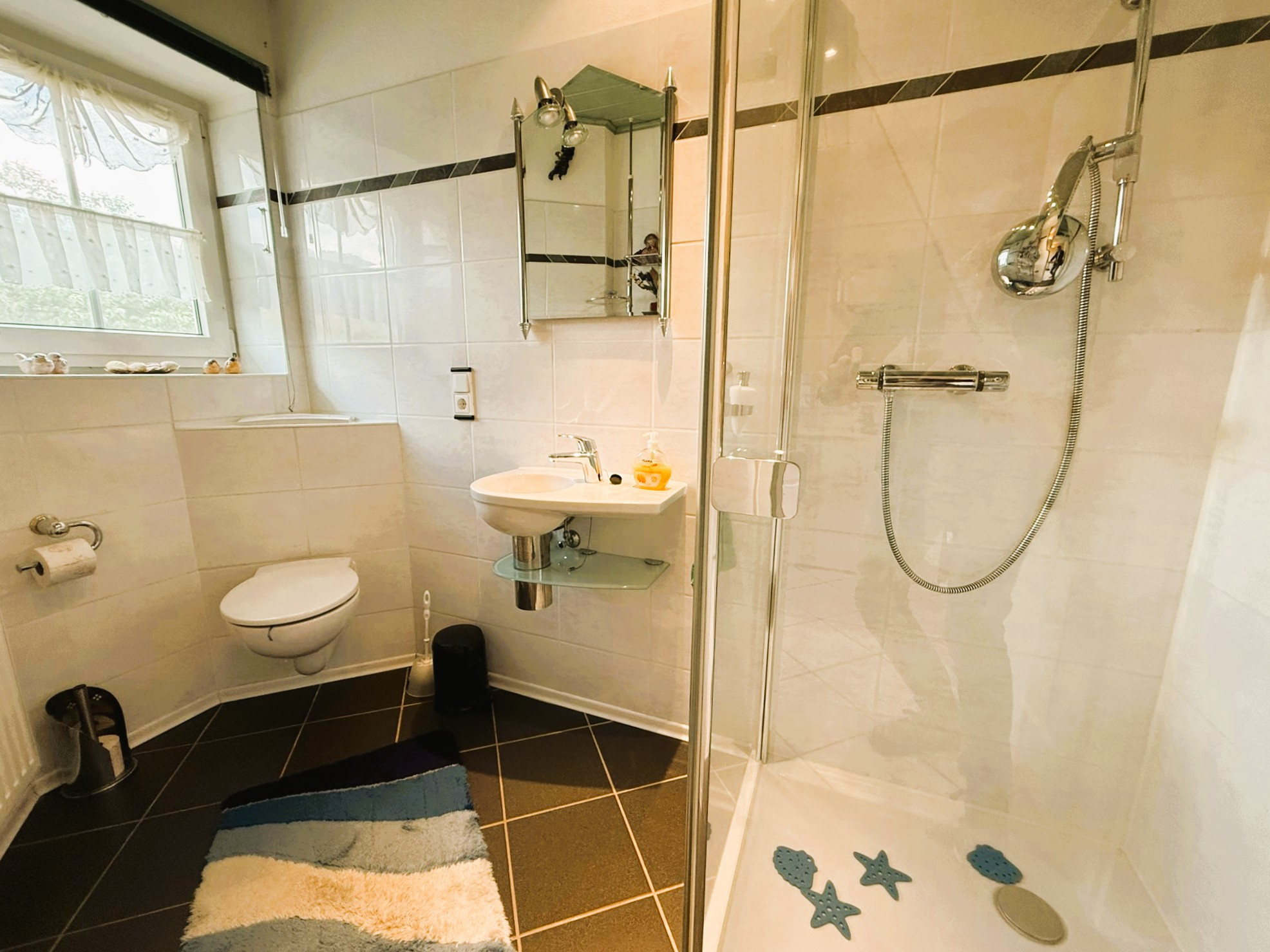 Beheizt wird das Gebäude durch eine im Jahr 2024 neu installierte Gasheizung von Vaillant mit Solarunterstützung. Zusätzlich zu den Heizkörpern verfügen die Küche und die Bäder über eine Fußbodenheizung. Auch zur Stromgewinnung wird die Sonne mittels der darüber hinaus installierten Fotovoltaikanlage genutzt. Die Fenster sind aus weißem Kunststoff mit innenliegenden Sprossen und besitzen einen auch heute noch zeitgemäßen Wärmedurchgangskoeffizient von 1,1 W/(m²K). Sie sind mit einer einbruchshemmenden Folie versehen. Darüber hinaus sorgen eine Alarmanlage und Überwachungskameras für Sicherheit. Unerwünschte tierische Eindringlinge werden durch die Insektenschutzgitter ferngehalten.