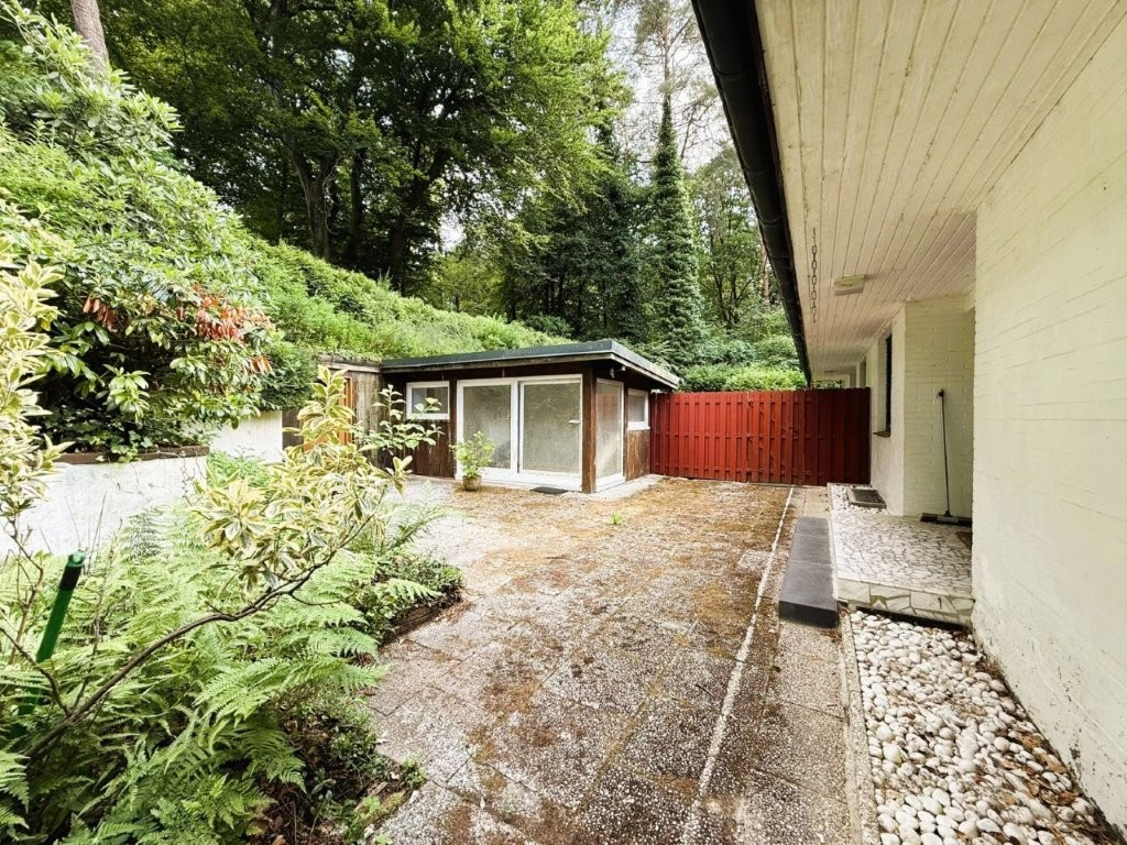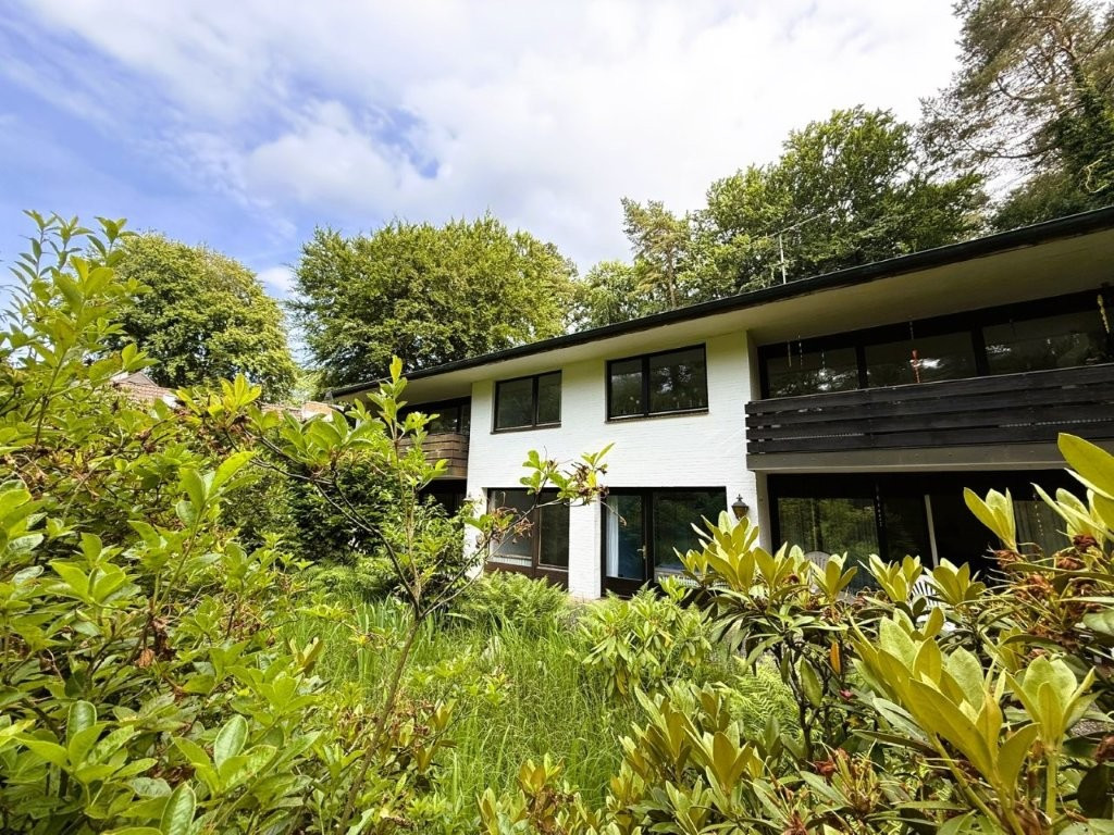 Die von uns angebotene Immobilie befindet sich kurz vor dem Ende einer Sackgasse in herausragend idyllischer und ruhiger Lage. Befahren Sie das von der Straße sichtgeschützte Grundstück, steht Ihnen ein Doppel-Carport mit angegliedertem Schuppen zur Verfügung. Ein gepflasterter Weg führt Sie durch den Garten entlang des alten Baumbestandes und der Rhododendren zu Ihrer Doppelhaushälfte. Vor dem Eingangsbereich befinden sich die uneinsehbare Südterrasse sowie ein helles Gartenhaus. Die Immobilie wurde im Jahr 1973 massiv erbaut und verfügt über drei Ebenen. Insgesamt ca. 156 m² Wohnfläche stehen Ihnen auf der mittleren sowie teilweise auf der unteren Ebene zur Verfügung, weitere ca. 71 m² Nutzfläche umfassen den Rest der unteren Ebene sowie das ausgebaute Dachgeschoss.