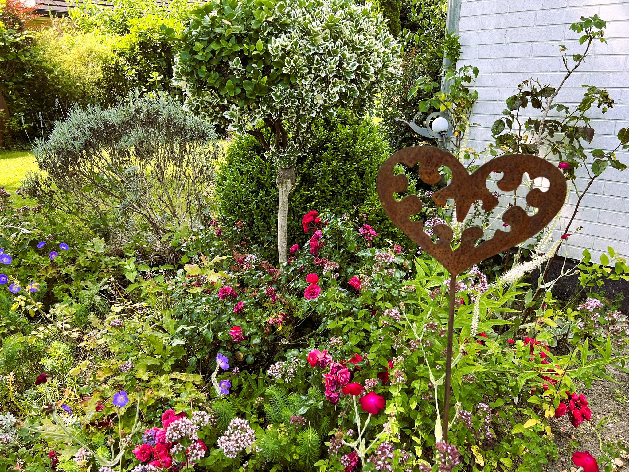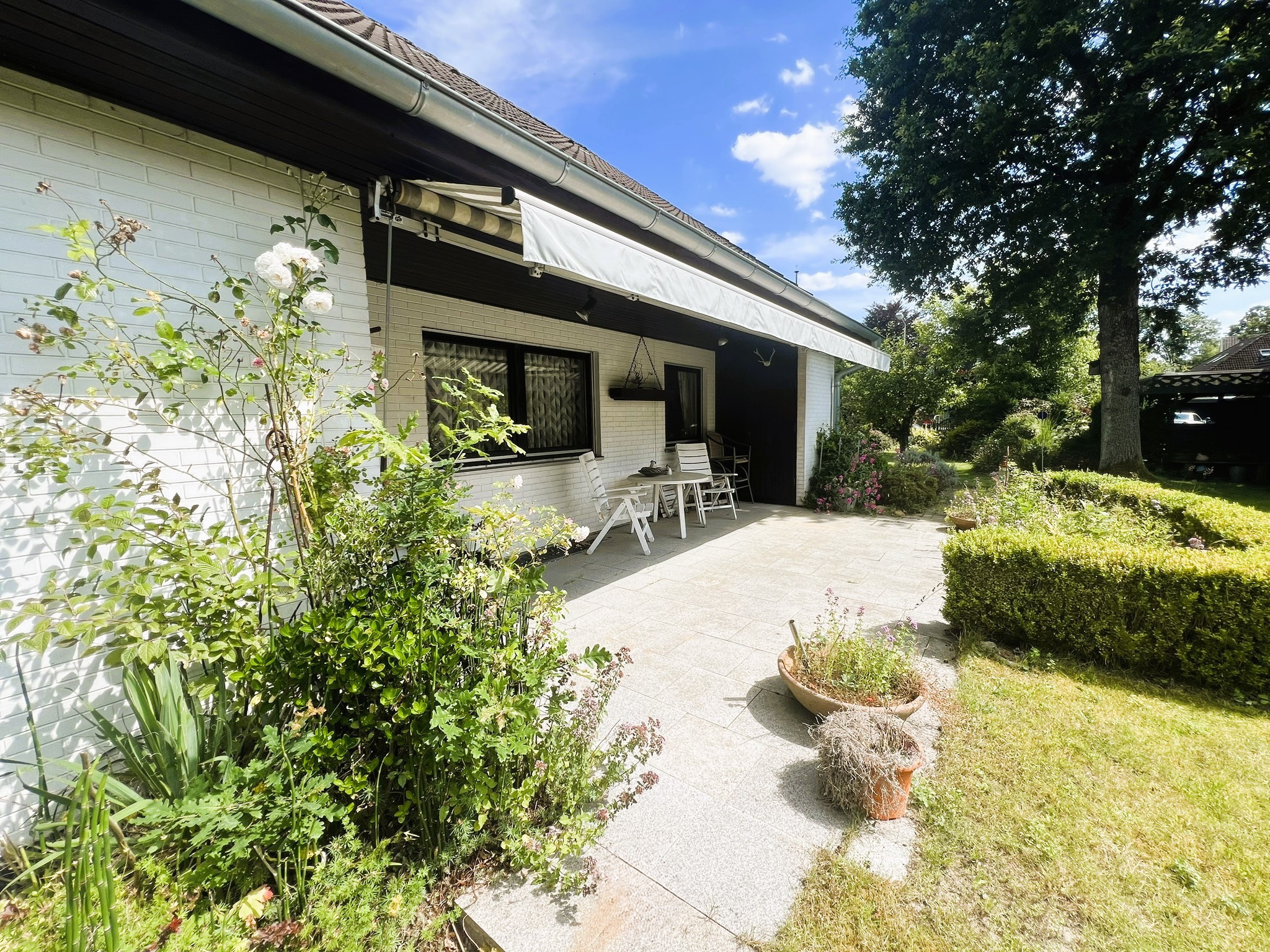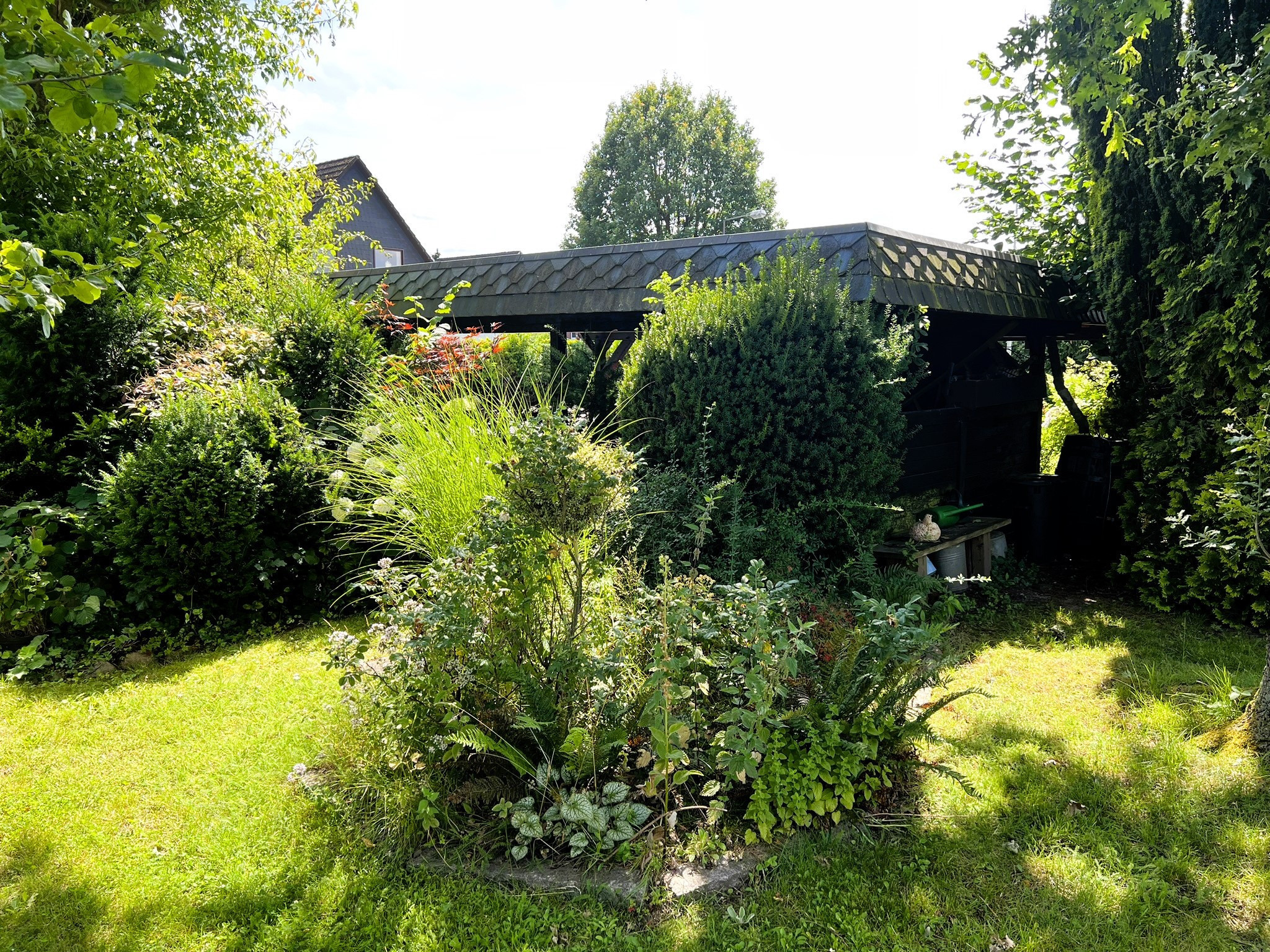 Der sonnige Garten ist abwechslungsreich und gleichzeitig pflegeleicht angelegt. Eiben, Koniferen, Buchsbäume und Rhododendren umsäumen die Grundstücksgrenzen und wahren Ihnen Ihre Privatsphäre. Eine große Eiche bietet bei Bedarf ein schattiges Plätzchen. Ihr Fahrzeug findet unter dem Carport seinen Platz. Möchten Sie das Auto stehen lassen, liegt die Bushaltestelle des Buchholzer Stadtbusses nur wenige Meter vom Grundstück entfernt.