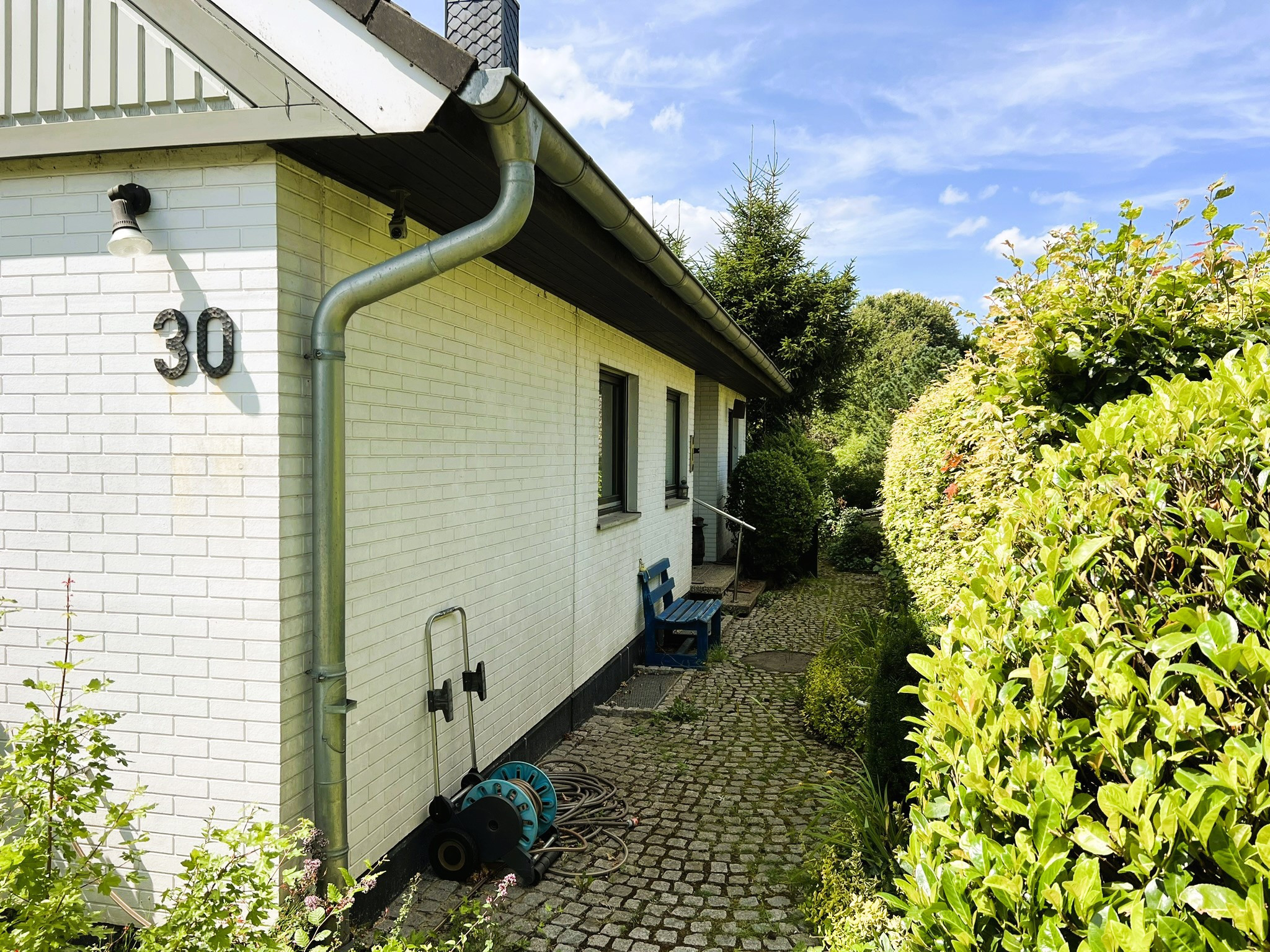 Dieses Einfamilienhaus wurde im Jahr 1977 als Massivbau-Fertighaus von der Firma Bötel erstellt. Durch seine ideale Platzierung in der nordwestlichen Ecke des 709 m² großen, nahezu rechteckig geschnittenen und ebenen Grundstücks ist es nicht nur optimal ausgerichtet, sondern bietet Ihnen auch eine vergleichsweise große nutzbare Gartenfläche.